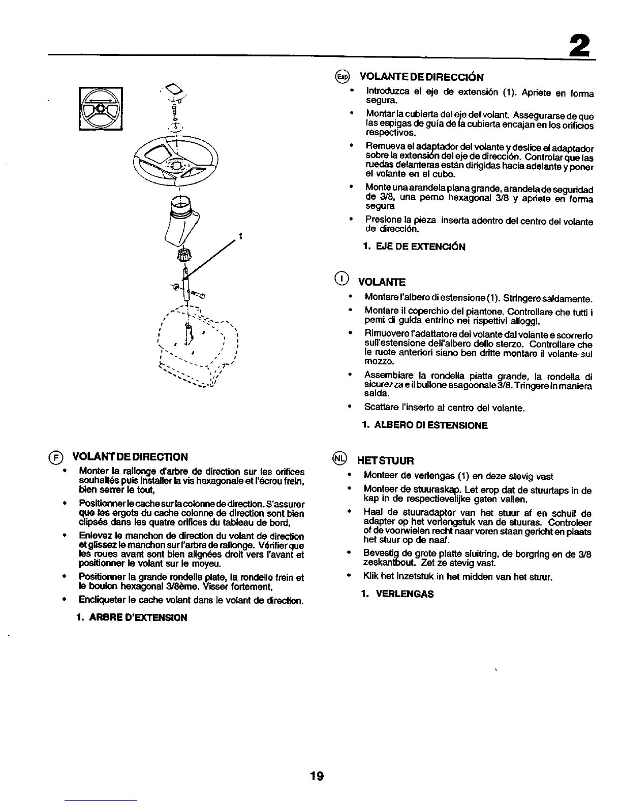 • Monter la rallonge d'arbre de direction sur les orifices