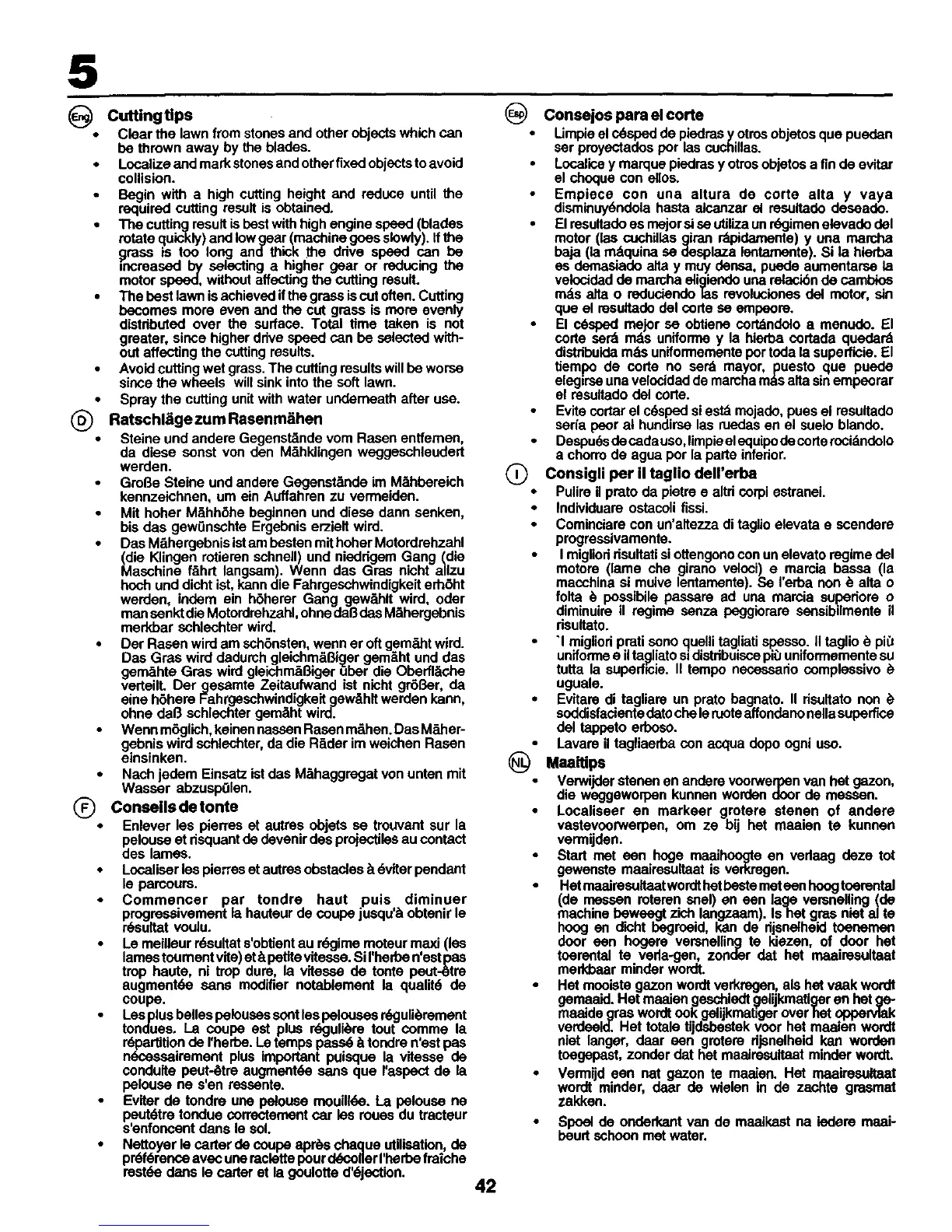 • Evitam di tagliare un prato bagnato. II risultato non