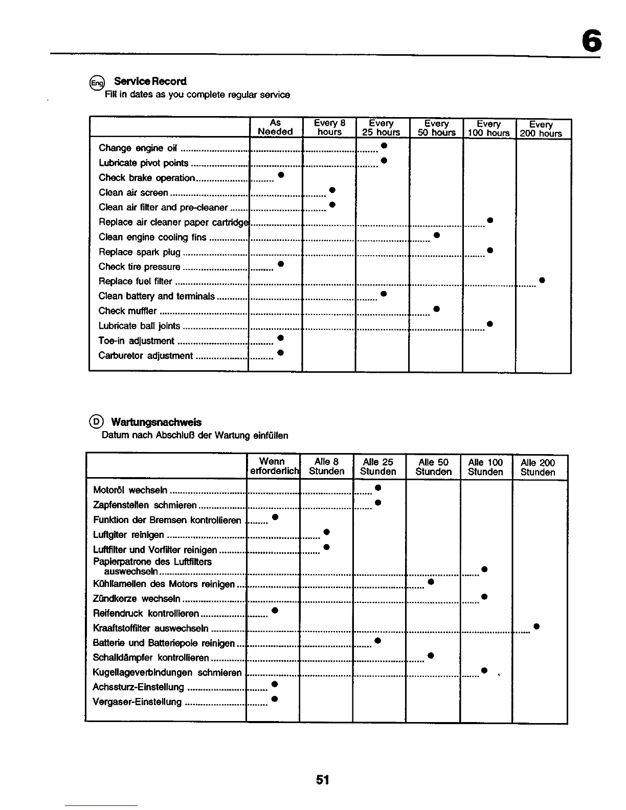 Replaceair cleanerpaper cartridge..................................................................................... •