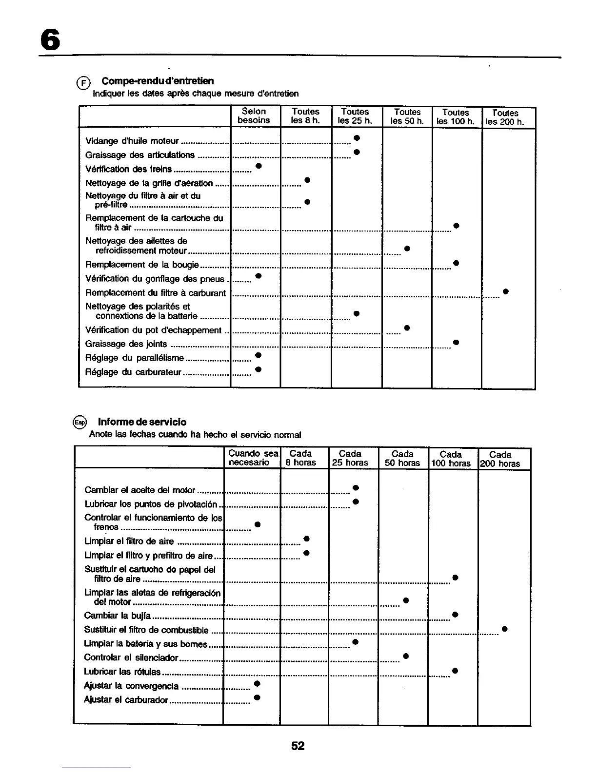 Indiquer les dates aprbs chaque rnesure d'entretien