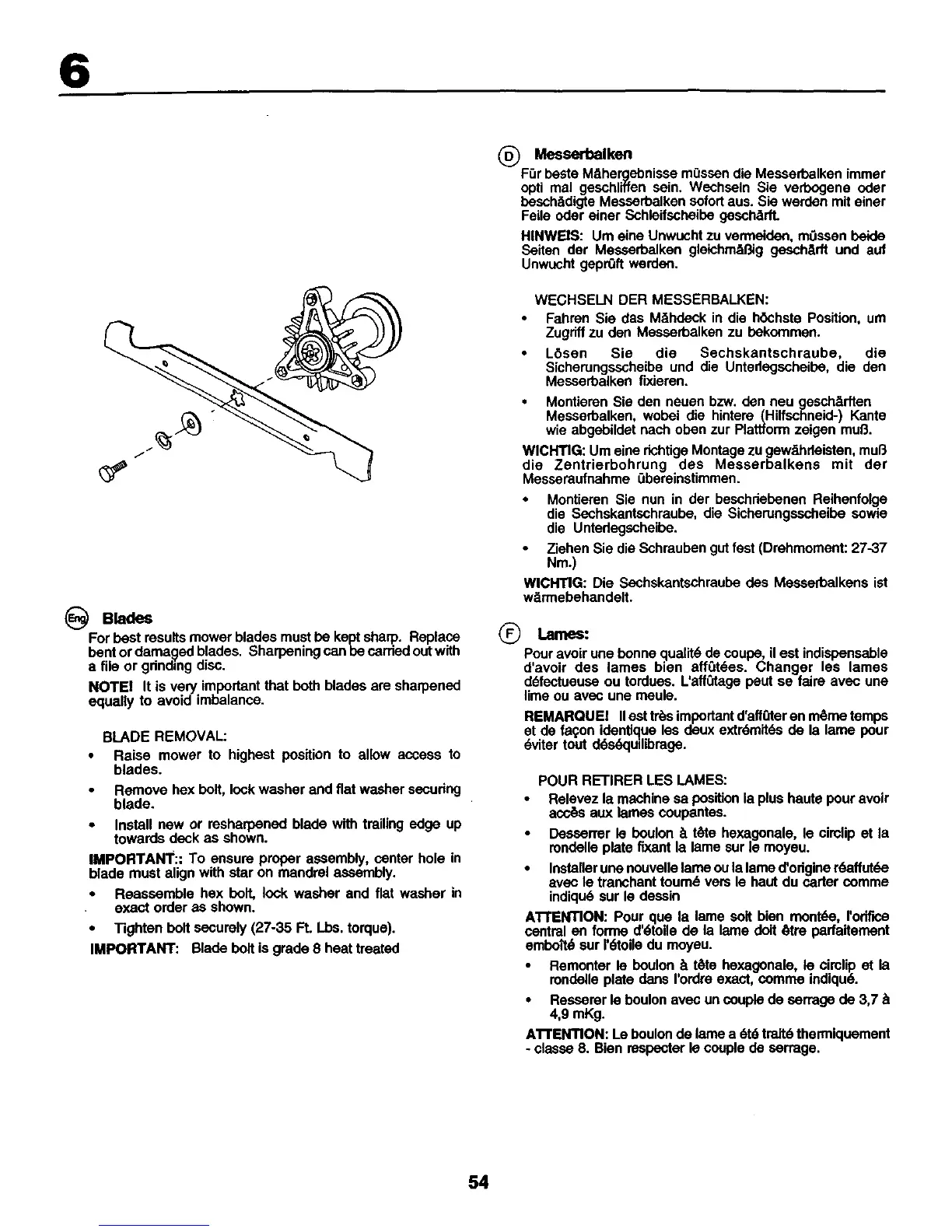 Forbestresultsmowerbladesmustbe keptsharp. Replace