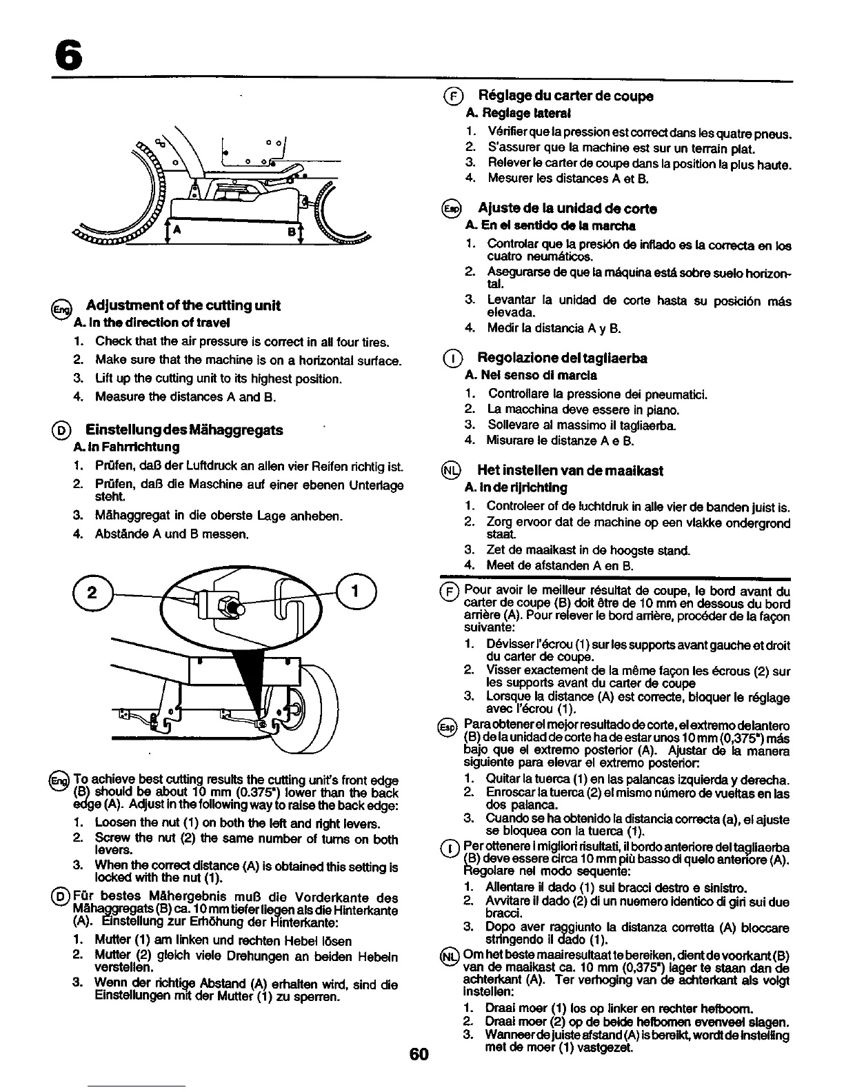edge (A). Adjust in the following way toraise the back edge: