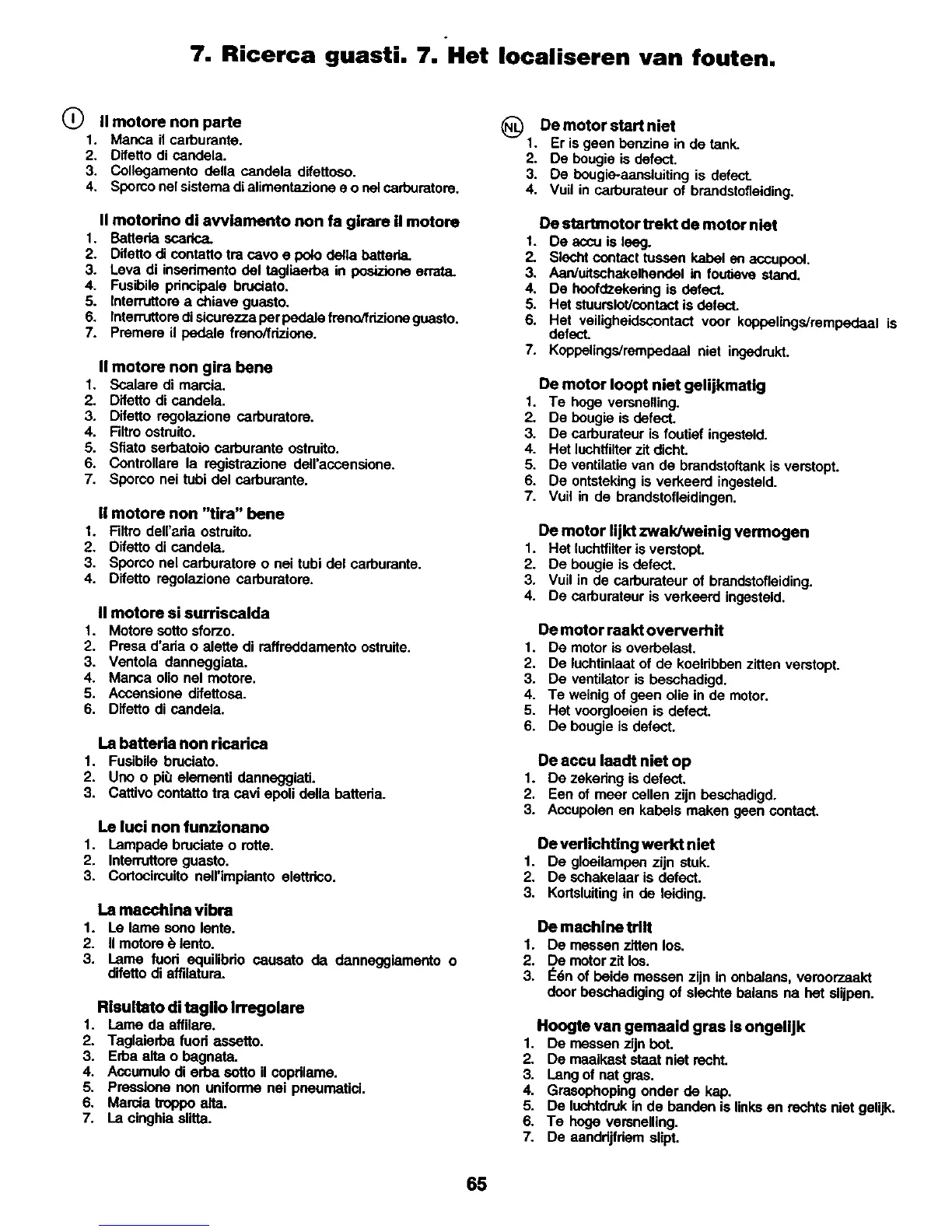 7. Ricerca guasti. 7. Het Iocaliseren van fouten.