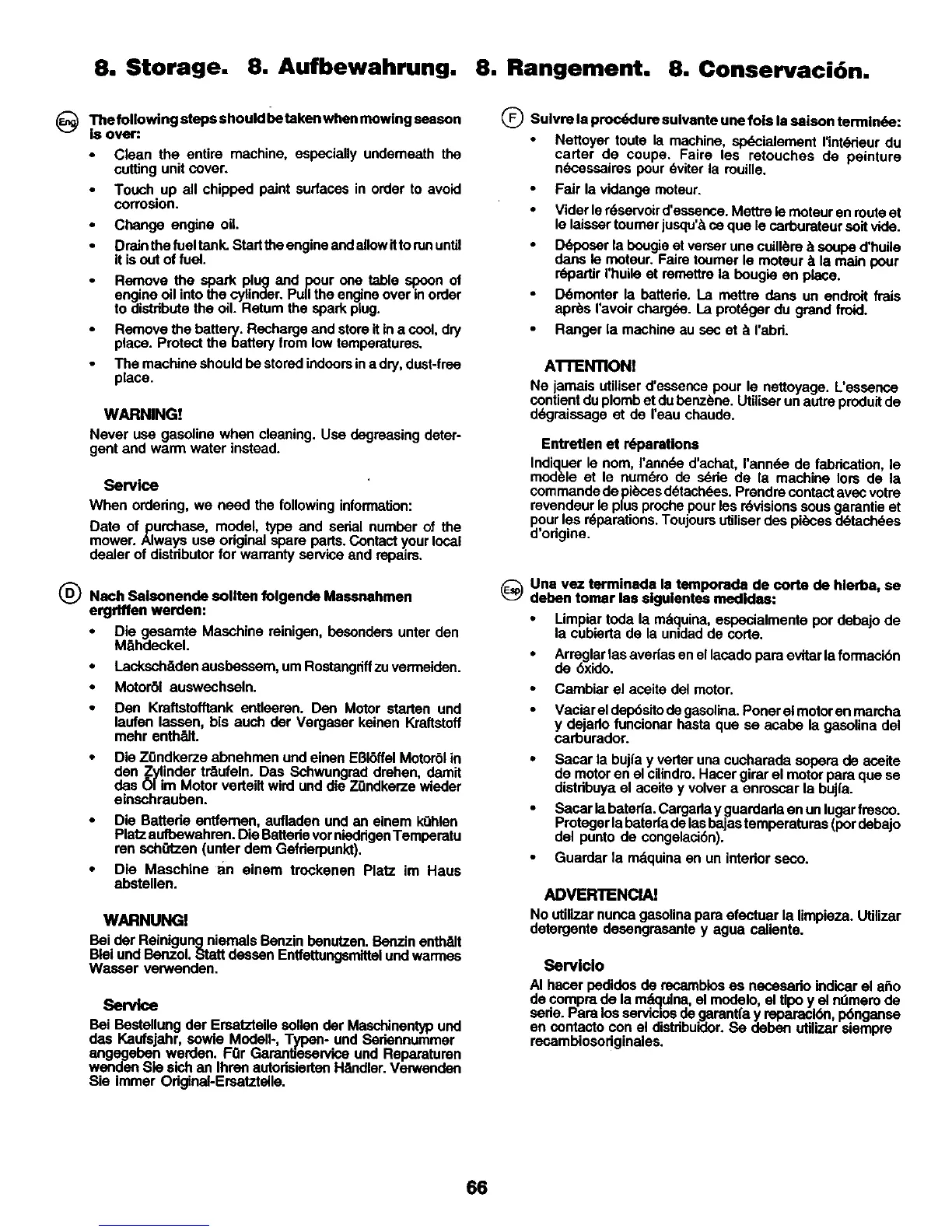 8. Storage• 8. Aufbewahrung. 8. Rangement. 8. Conservaci6n.