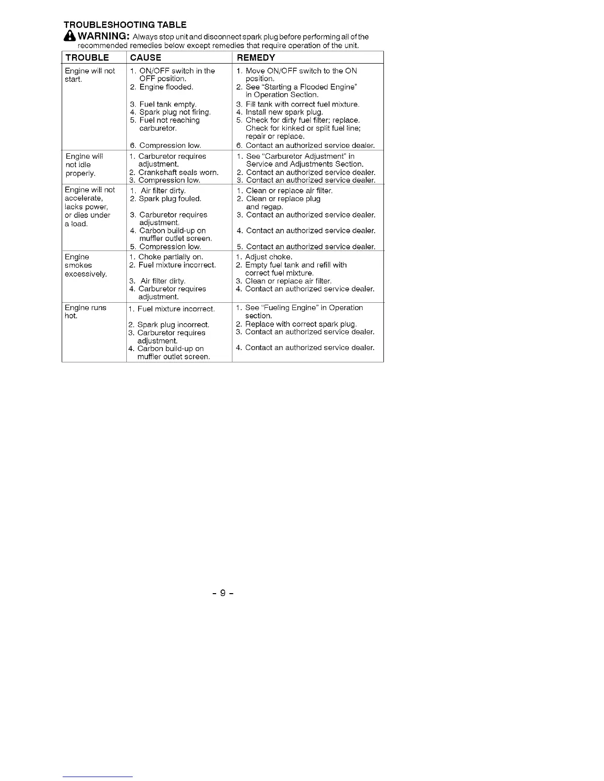 1. Fuel mixture incorrect.