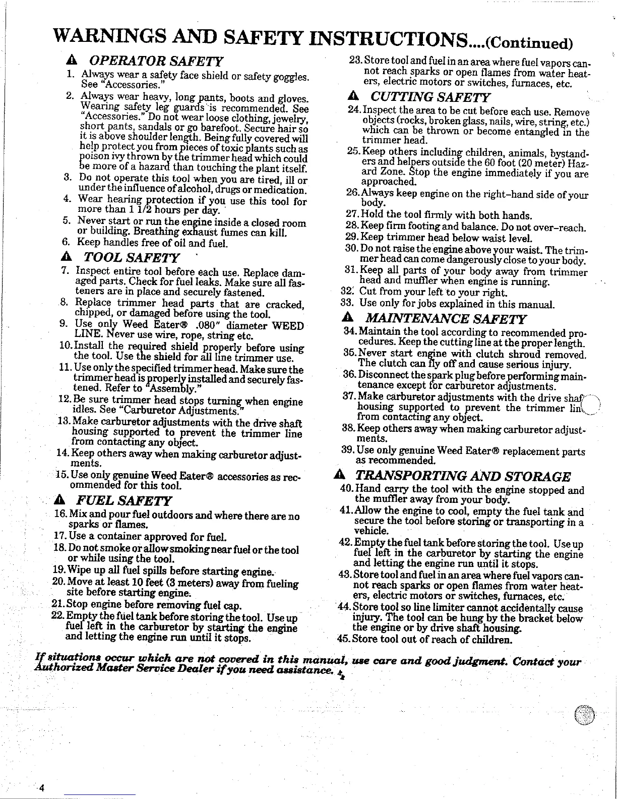 Weed Eater GTI 17 - WARNINGS AND SAFETY INSTRUCTIONS; Operator Safety; Tool Safety; Fuel Safety