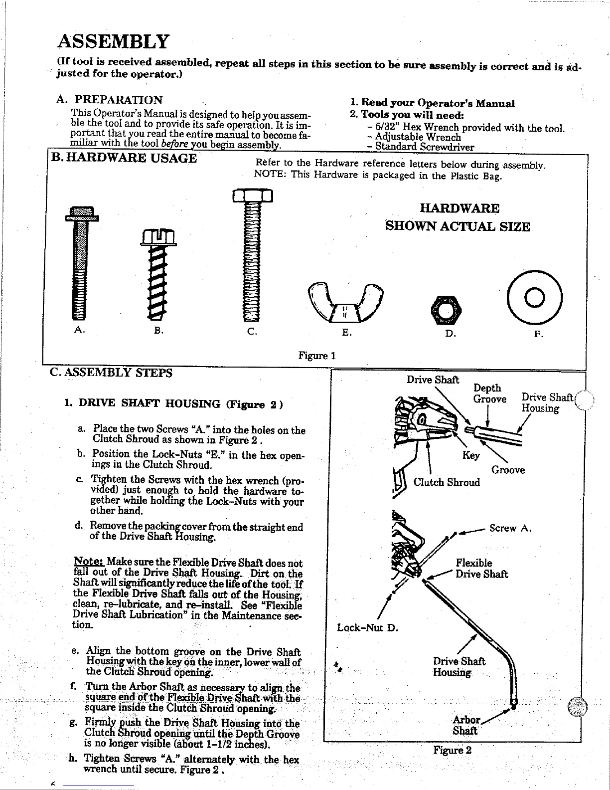 Weed Eater GTI 17 - Preparation; Hardware Usage; Assembly Steps; Drive Shaft Housing