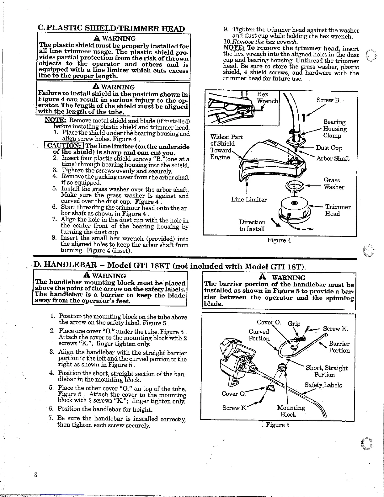 Weed Eater GTI18KT - Plastic Shield;Trimmer Head; Handlebar