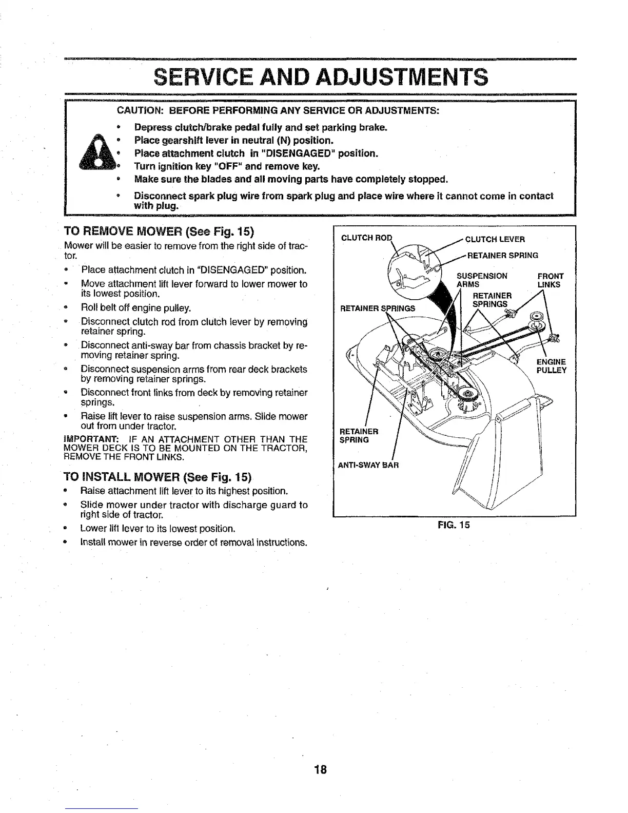 TO REMOVE MOWER (See Fig. 15)
