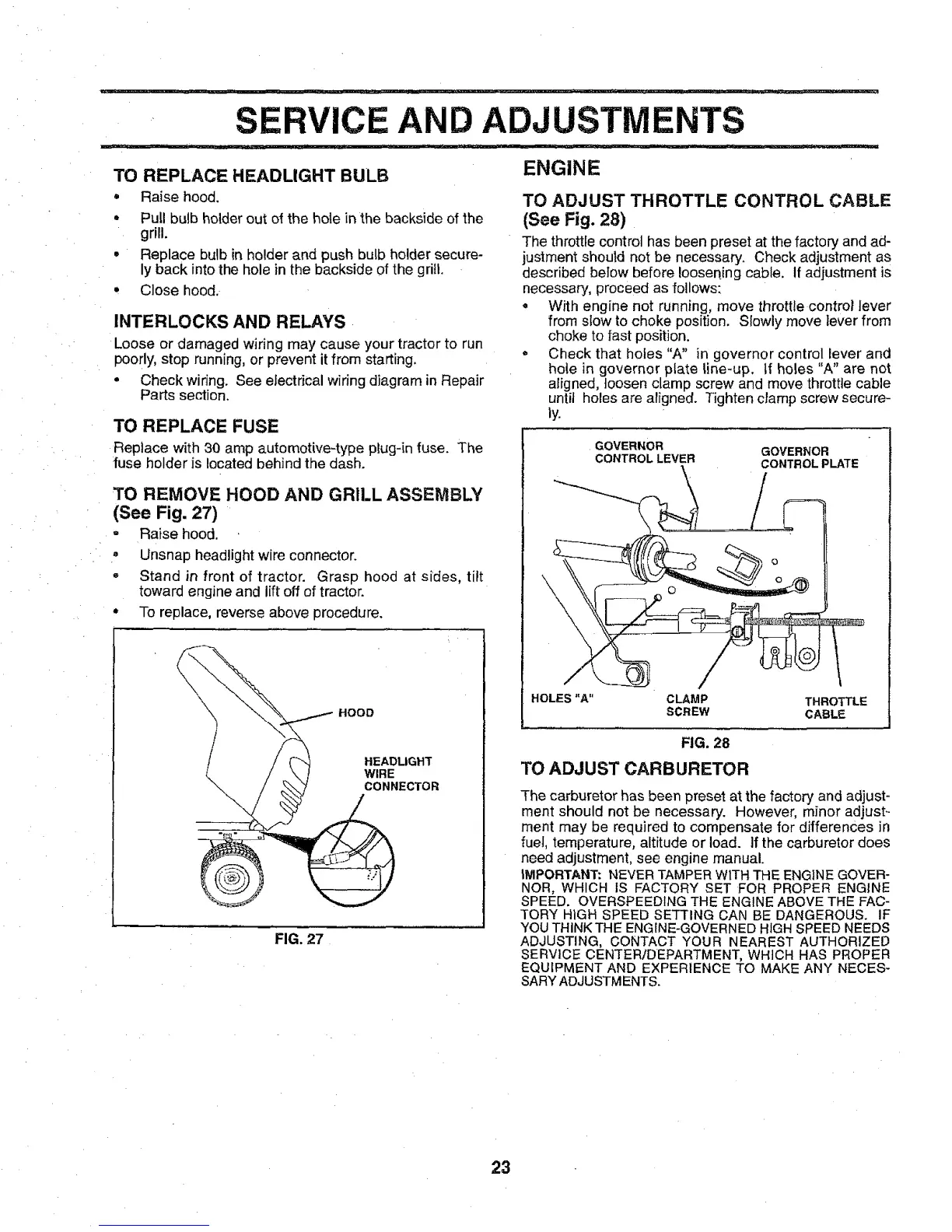 |MPORTANT: NEVER TAMPER WITH THE ENGINE GOVER-