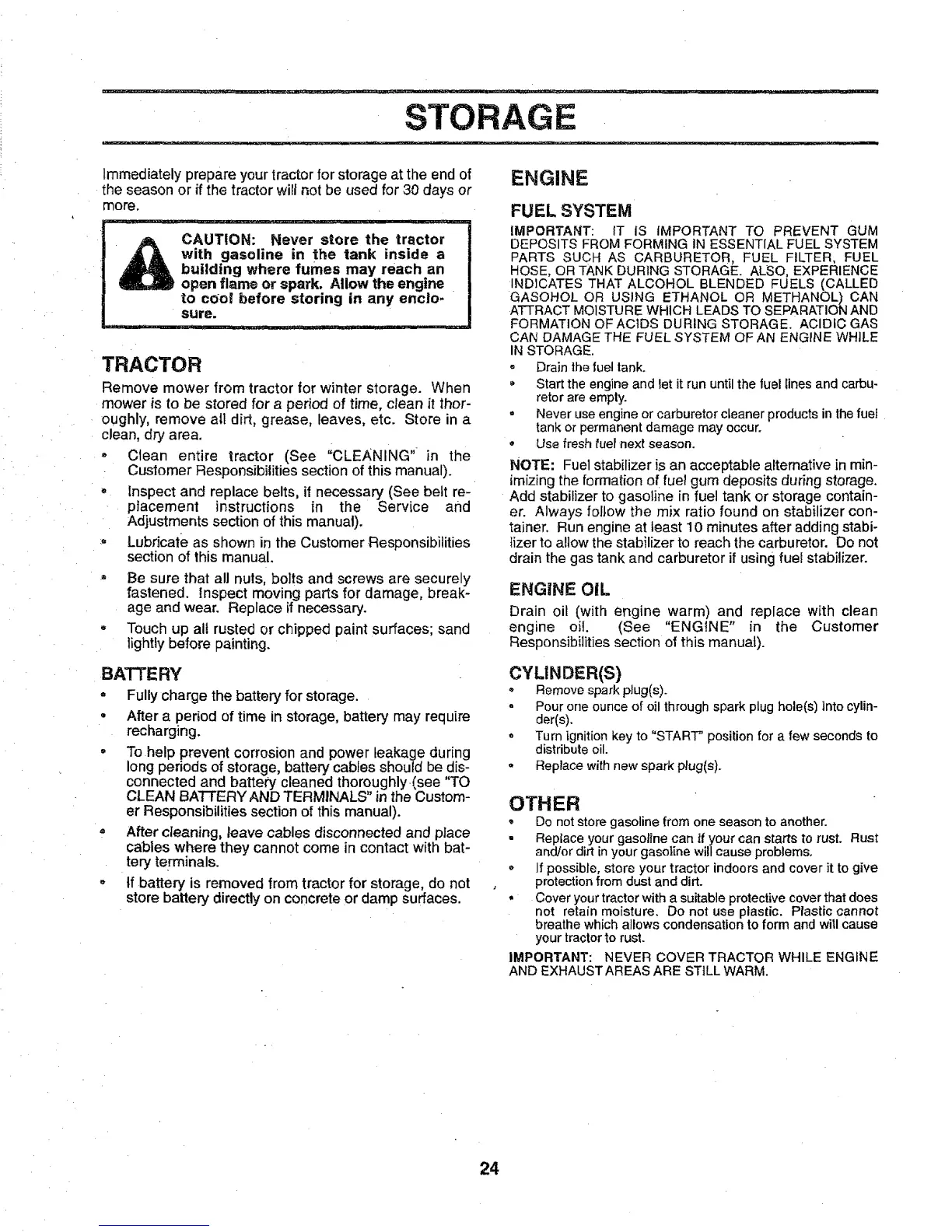 IMPORTANT: NEVER COVER TRACTOR WHILEENGINE