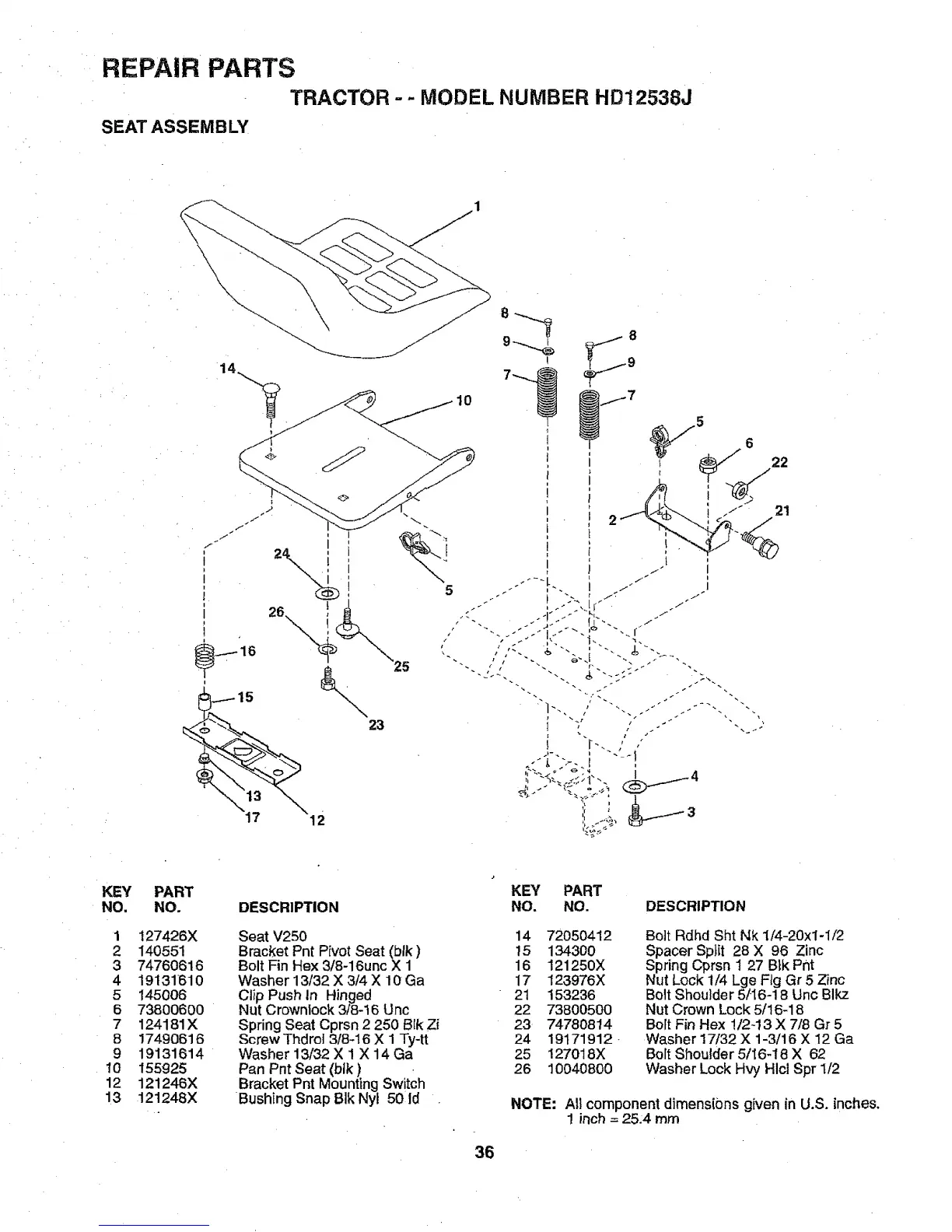 TRACTOR - - MODEL NUMBER HD12538J