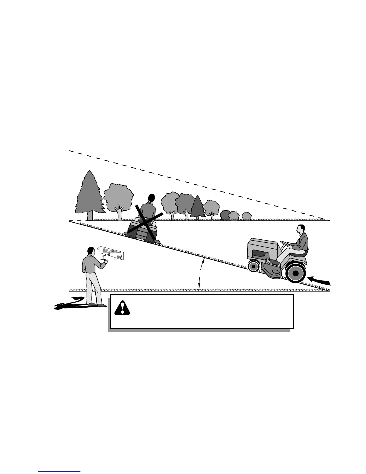 down the face of slopes, never across the face. Do not mow