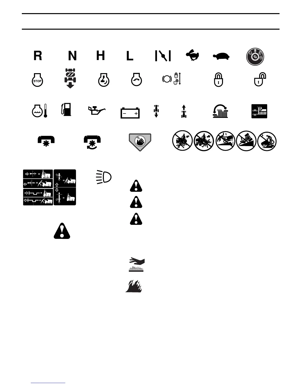 These symbols may appear on your tractor or in literature supplied with the product. Learn and understand their mean-
