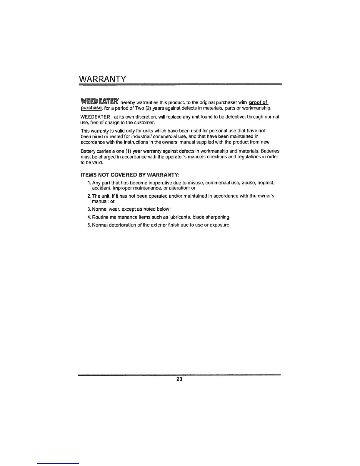Weed Eater LT 20V - WARRANTY