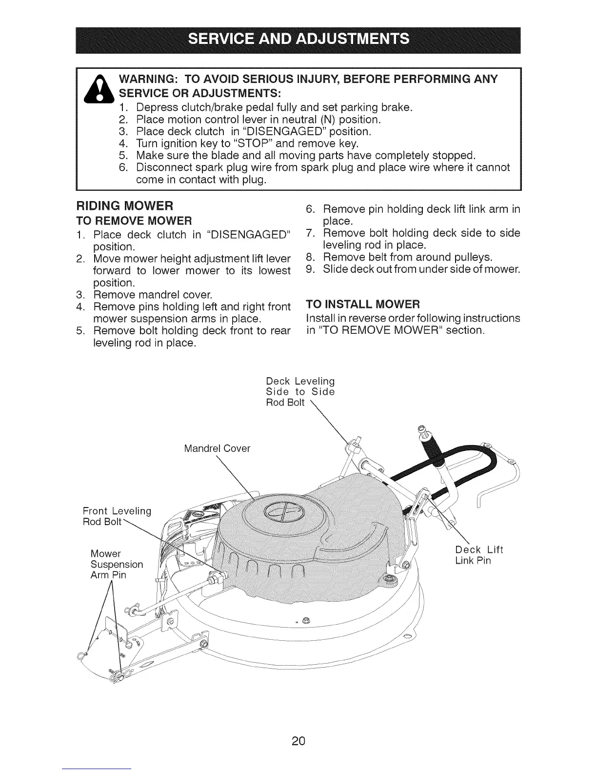 in "TO REMOVE MOWER" section.