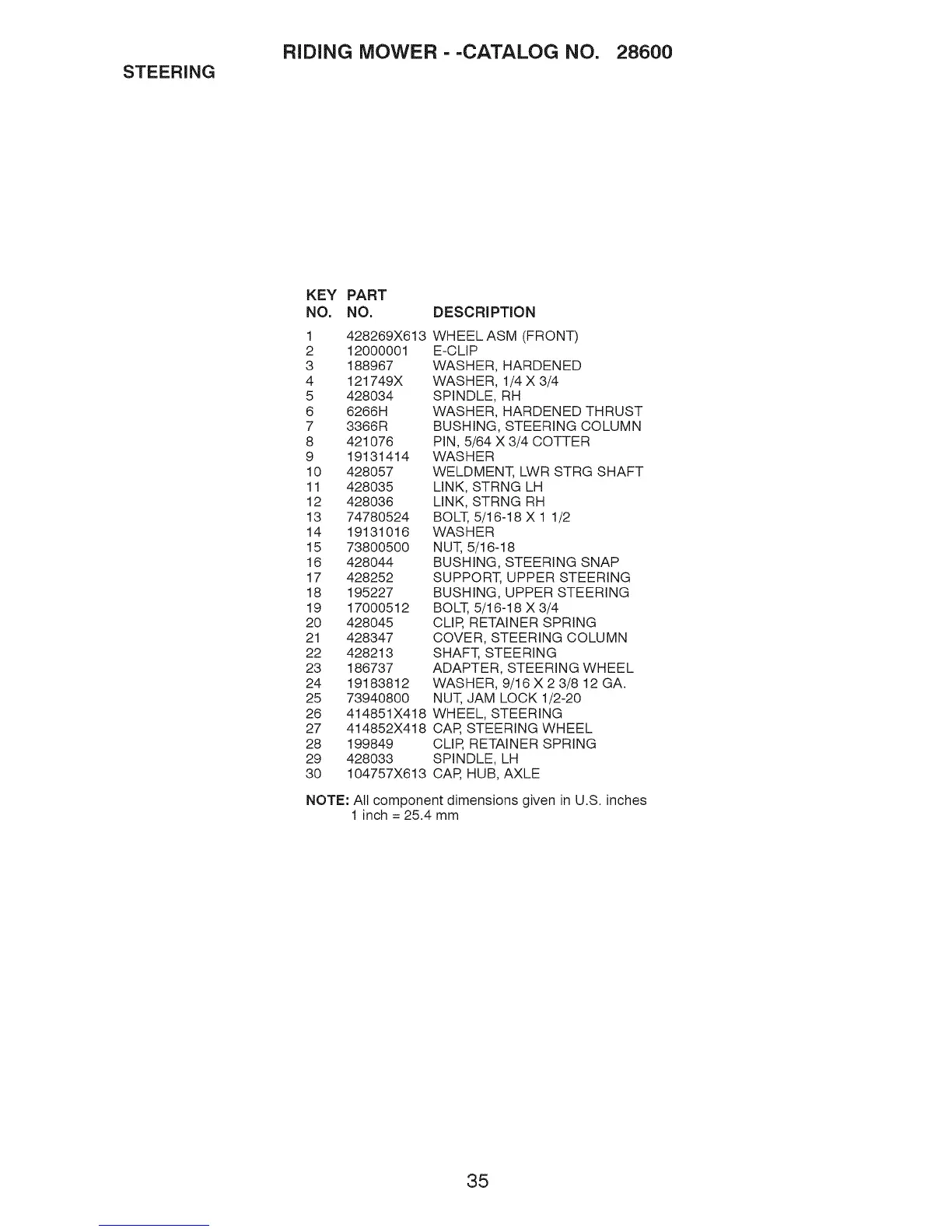 Weed Eater One 28600 - Steering Part Identification; Steering System Parts List