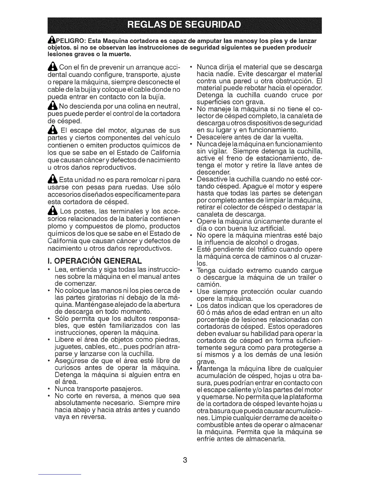 • No maneje la m&quina si no tiene el co-