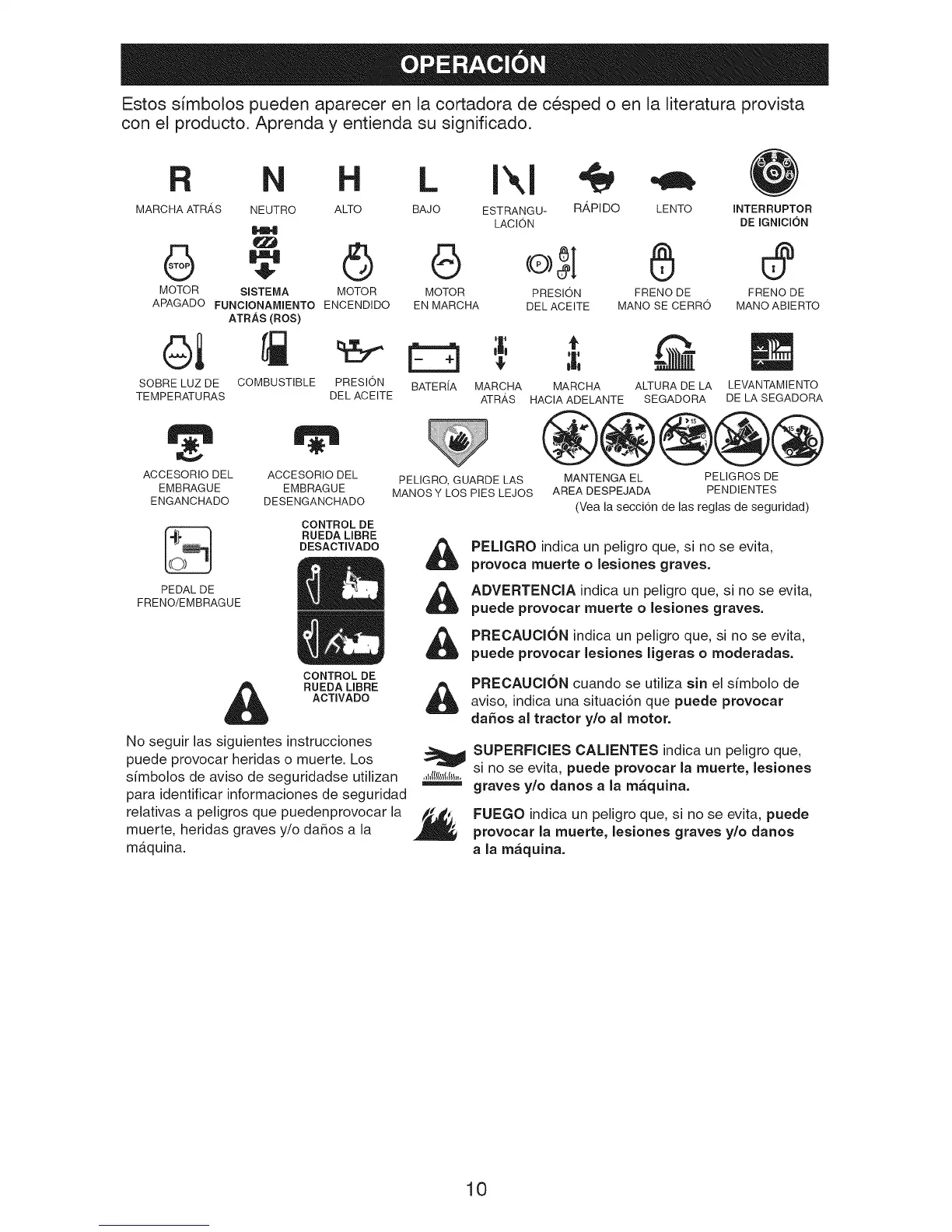 Estos simbolos pueden aparecer en la cortadora de cesped o en la literatura provista