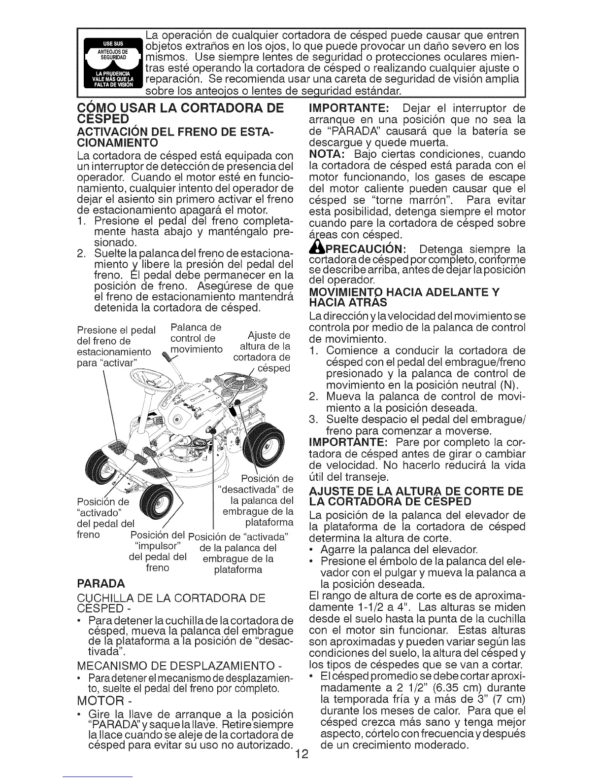 tras este operando la cortadora de cesped o realizando cualquier ajuste o