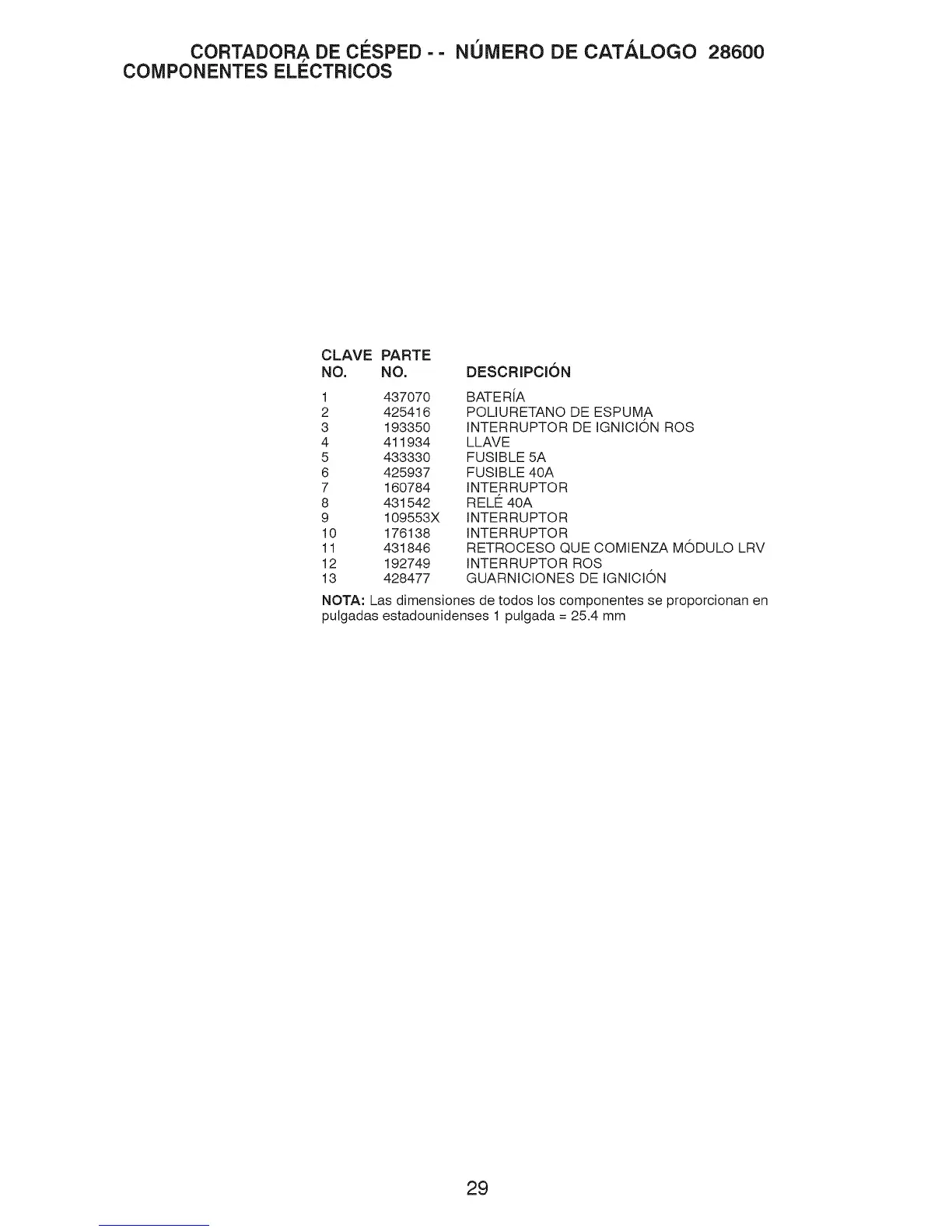 CORTADORA DE CESPED - - NOMERO DE CATALOGO 28600