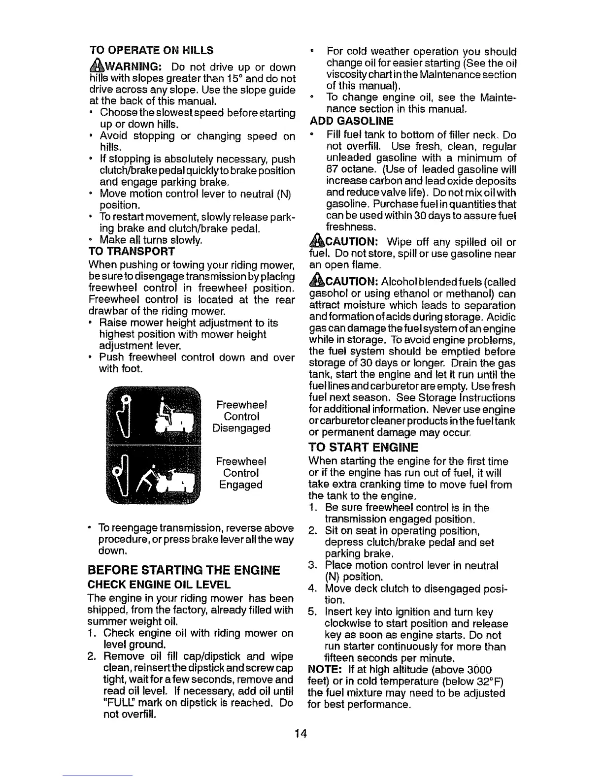 BEFORE STARTING THE ENGINE