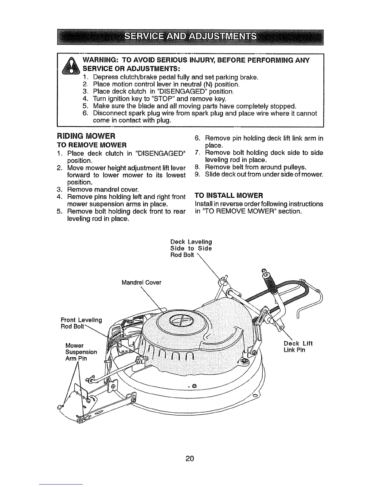 _ ARNING: TO AVOID SERIOUS INJURY, BEFORE PERFORMING ANYSERVICE OR ADJUSTMENTS: