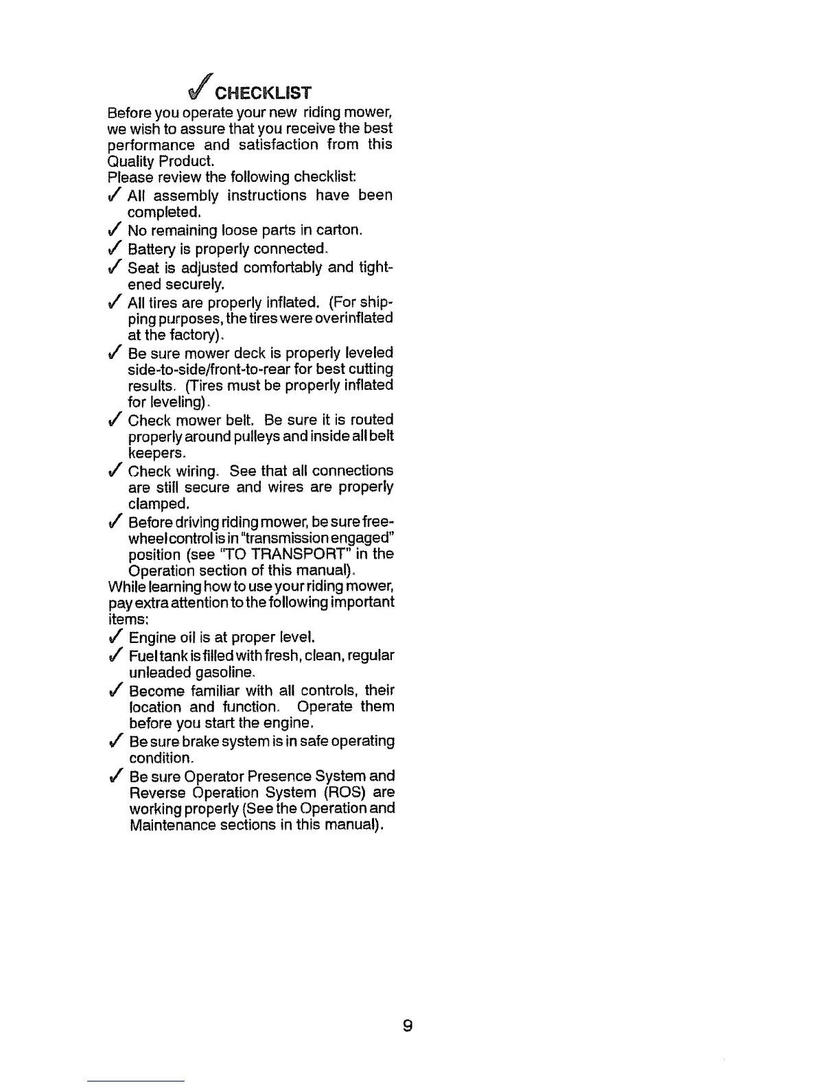 Before you operate your new riding mower,