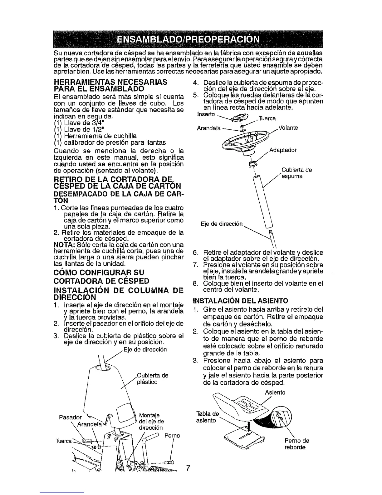 Lie ta cortadora de c6sped todas las partes y la ferreteria que usted ensambte se deaen