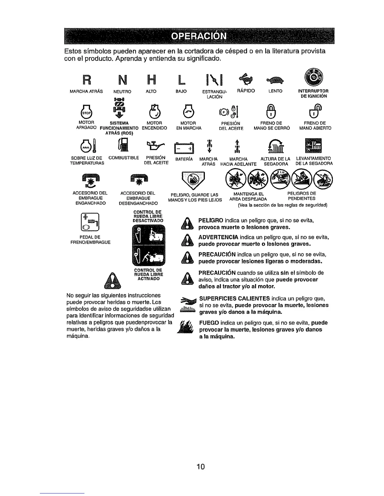 Estos simbolos pueden aparecer en la cortadora de c_sped o en la literatura provista
