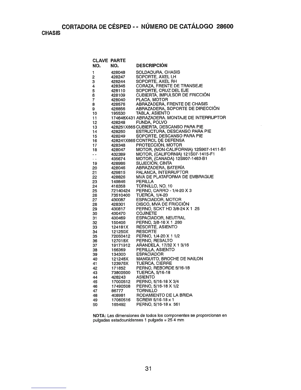 NOTA, Las dimensiones de todos los componentes se proporcionan en