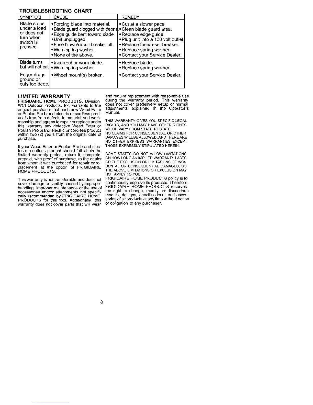 If your Weed Eater or Poulan Pro brand elec-