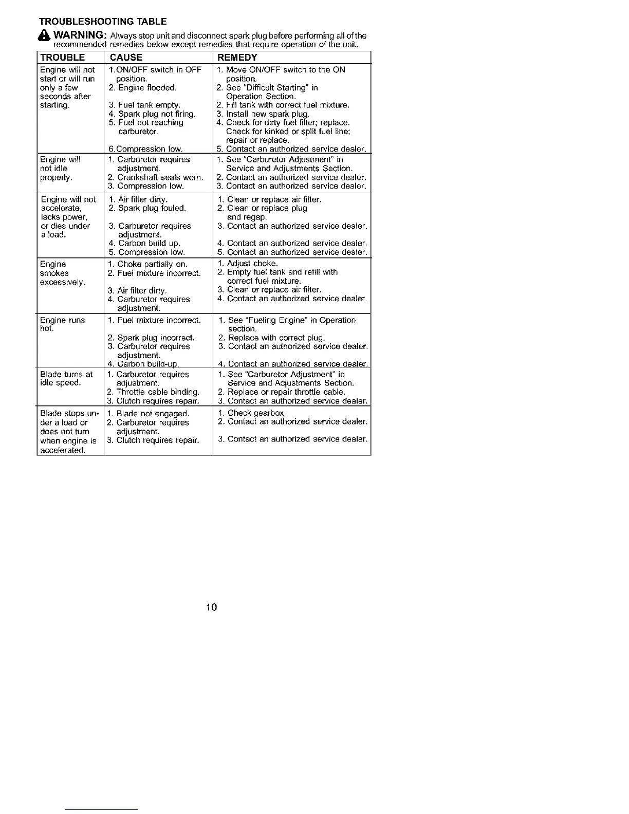 WARNING: Always stop unit and disconnect spark plug before performing all of the