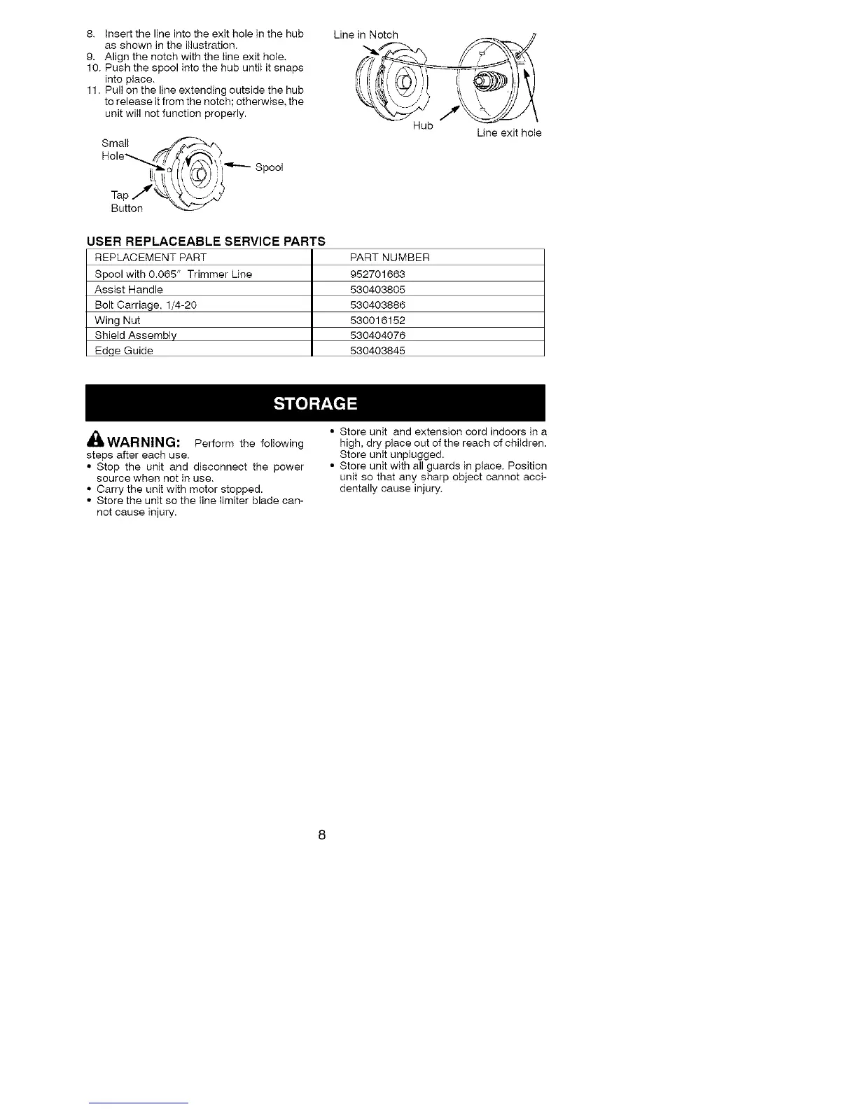 • Store the unit so the line limiter blade can-