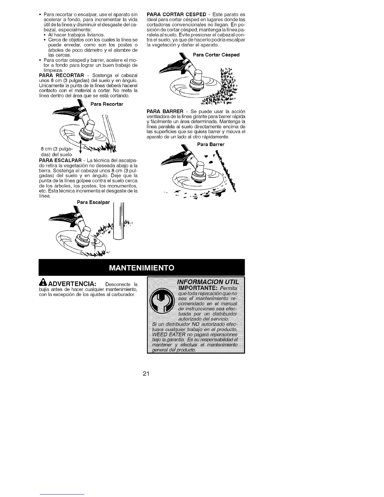 tierra. Sostenga el cabezal unos 8 cm (3 pul-