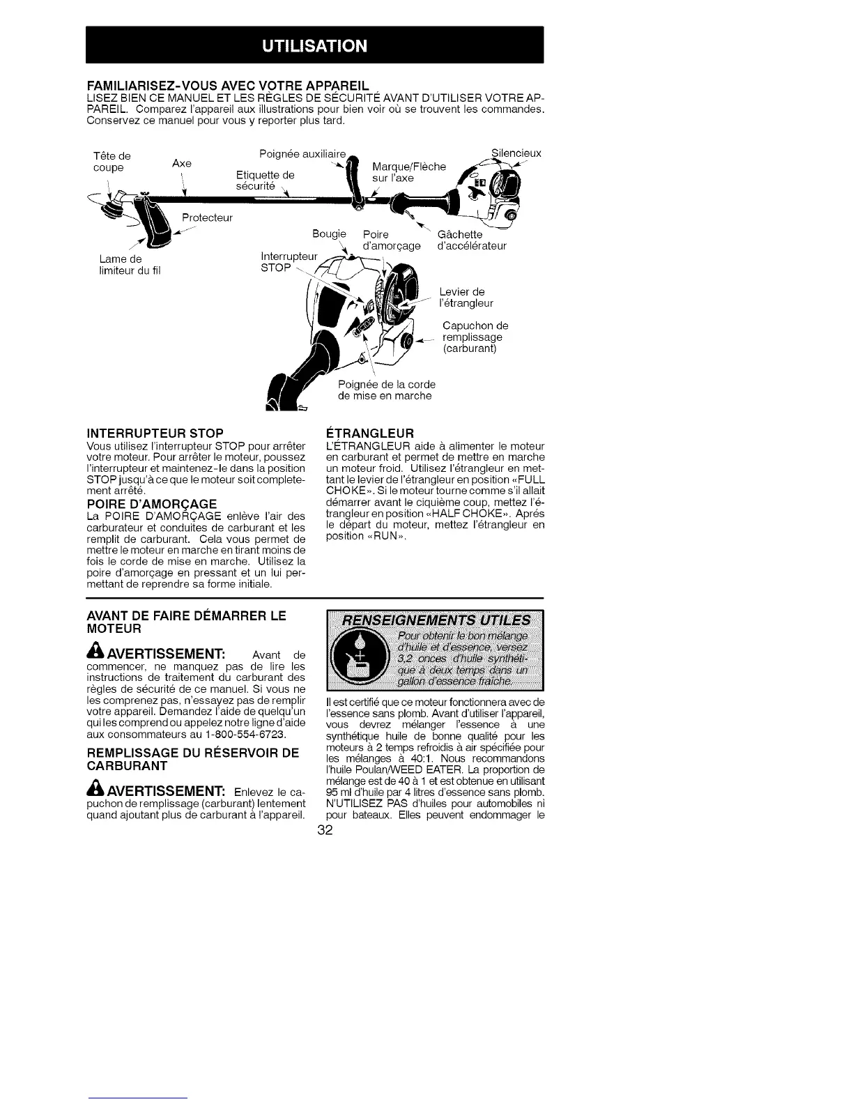 ressence sans plomb. Avant d'utiliser I'appareil,