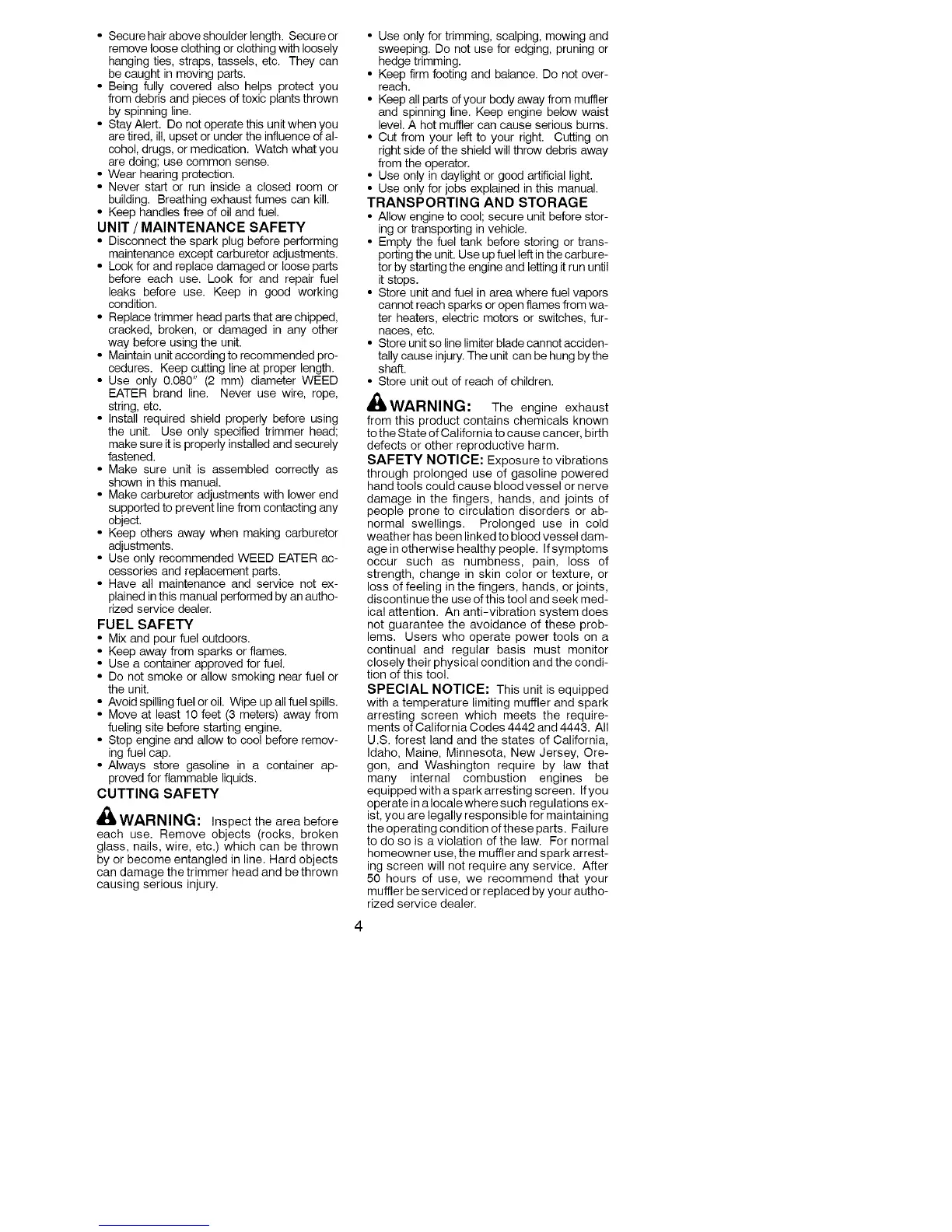 • Avoid spilling fuel or oil. Wipe up all fuel spills.