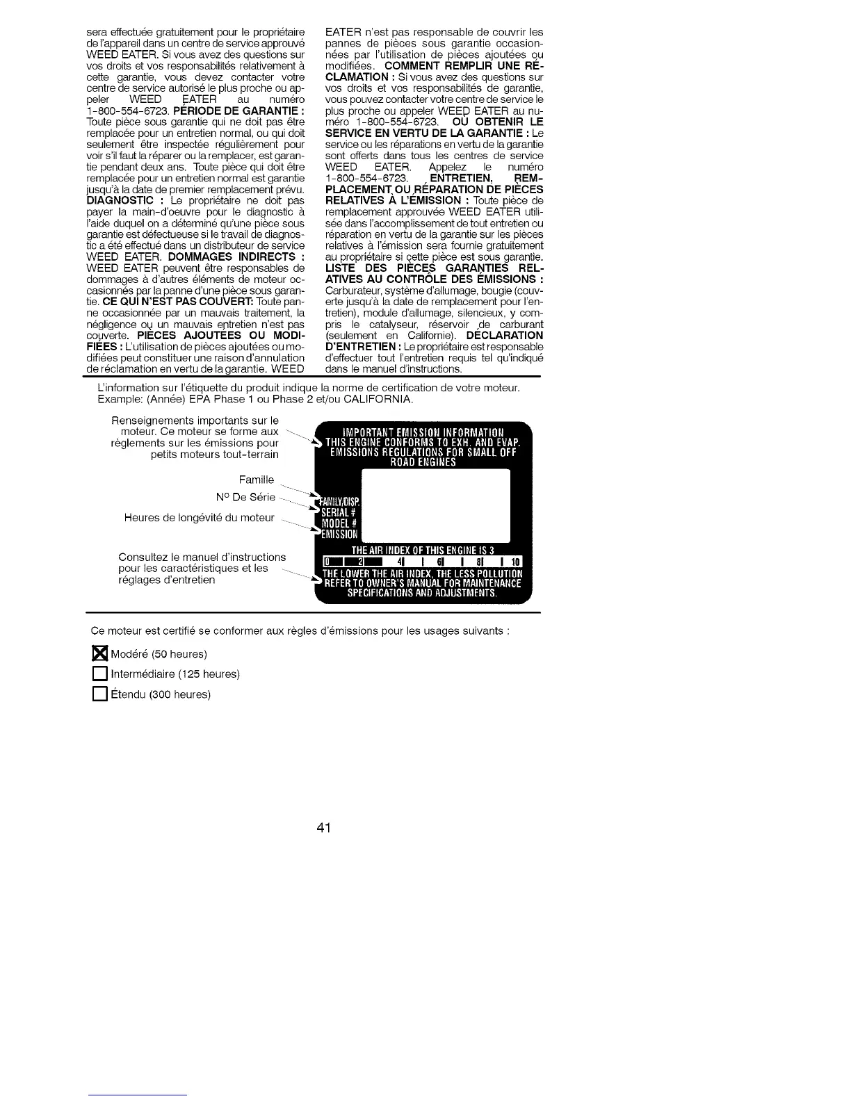 L'information sur I'etiquette du produit indique la norme de certification de votre moteur.