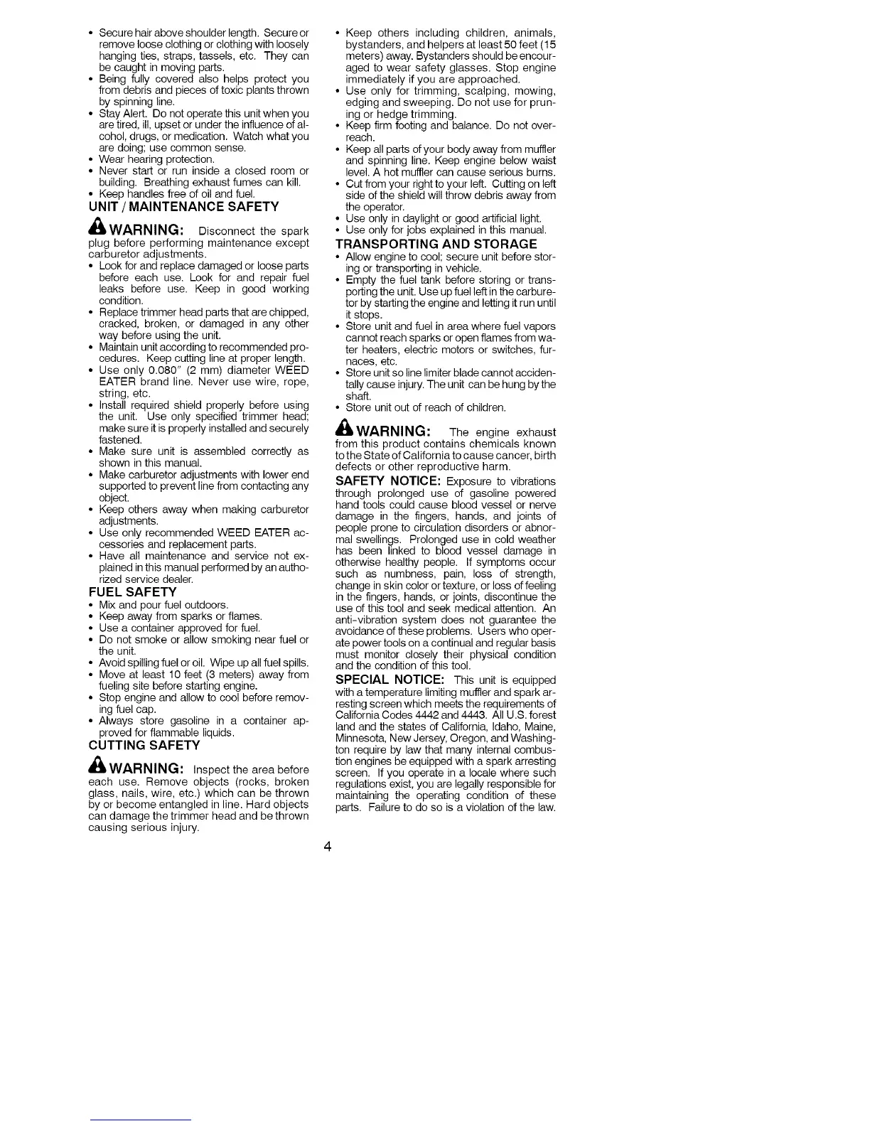 • Use only recommended WEED EATER ac-