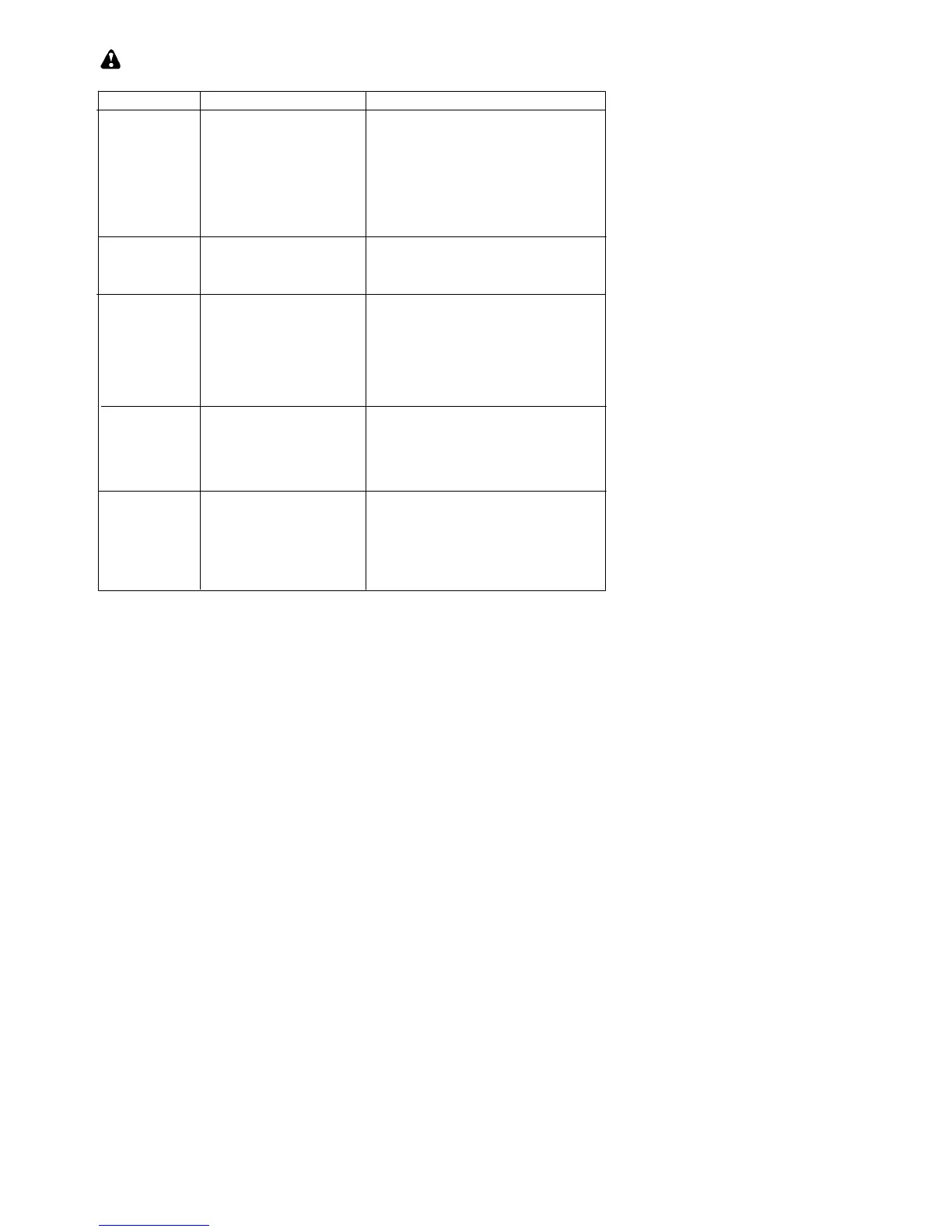TROUBLESHOOTING TABLE