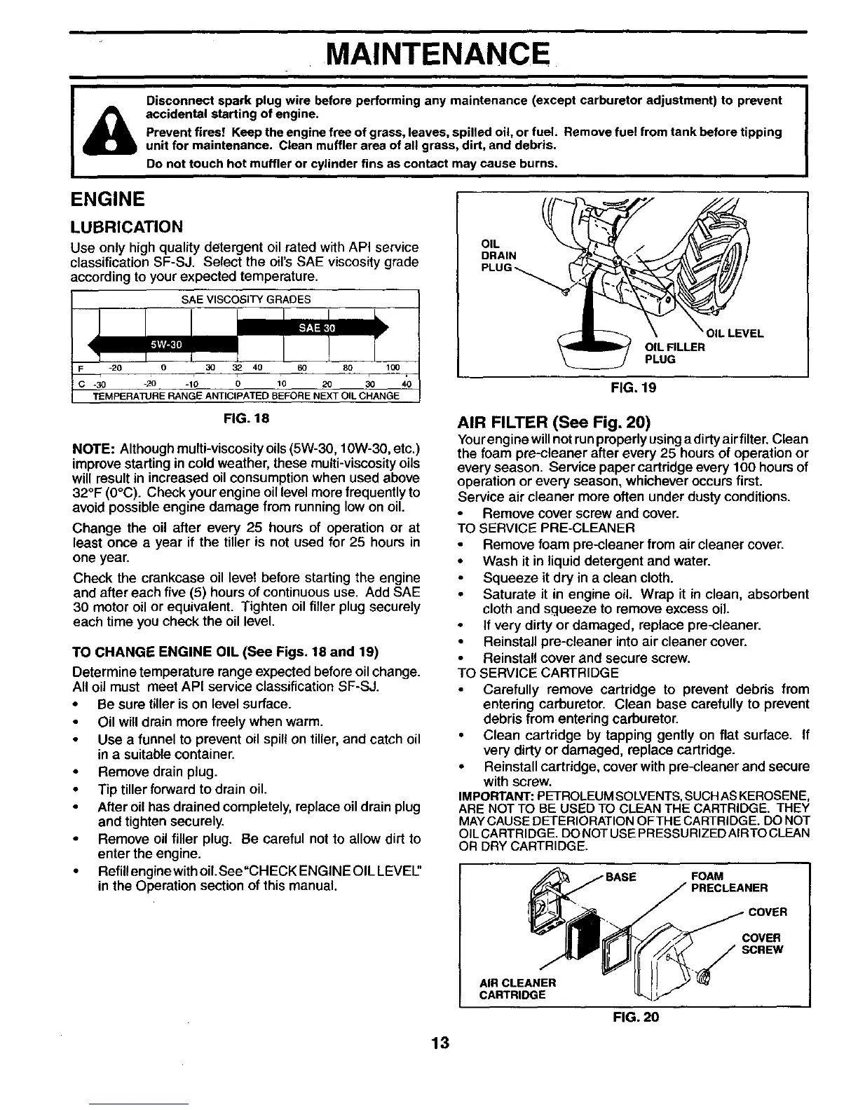 TO CHANGE ENGINE OIL (See Figs. 18 and 19)