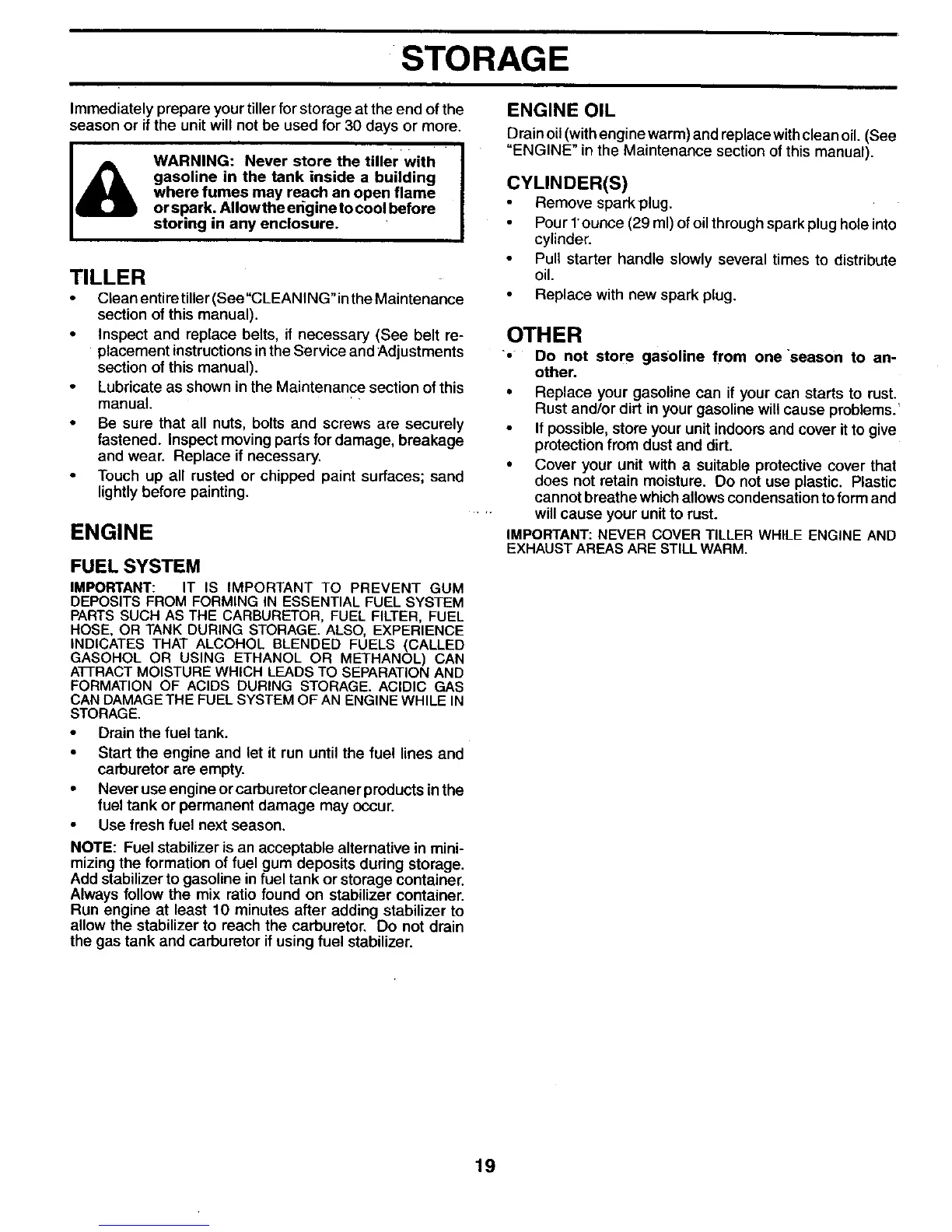 Clean entire tiller(See "CLEANING" inthe Maintenance