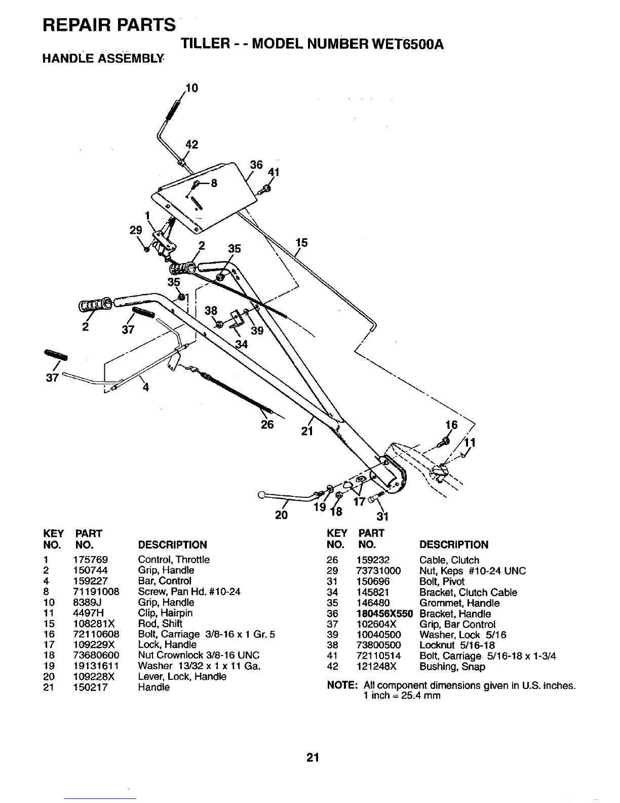 TILLER - - MODEL NUMBER WET6500A