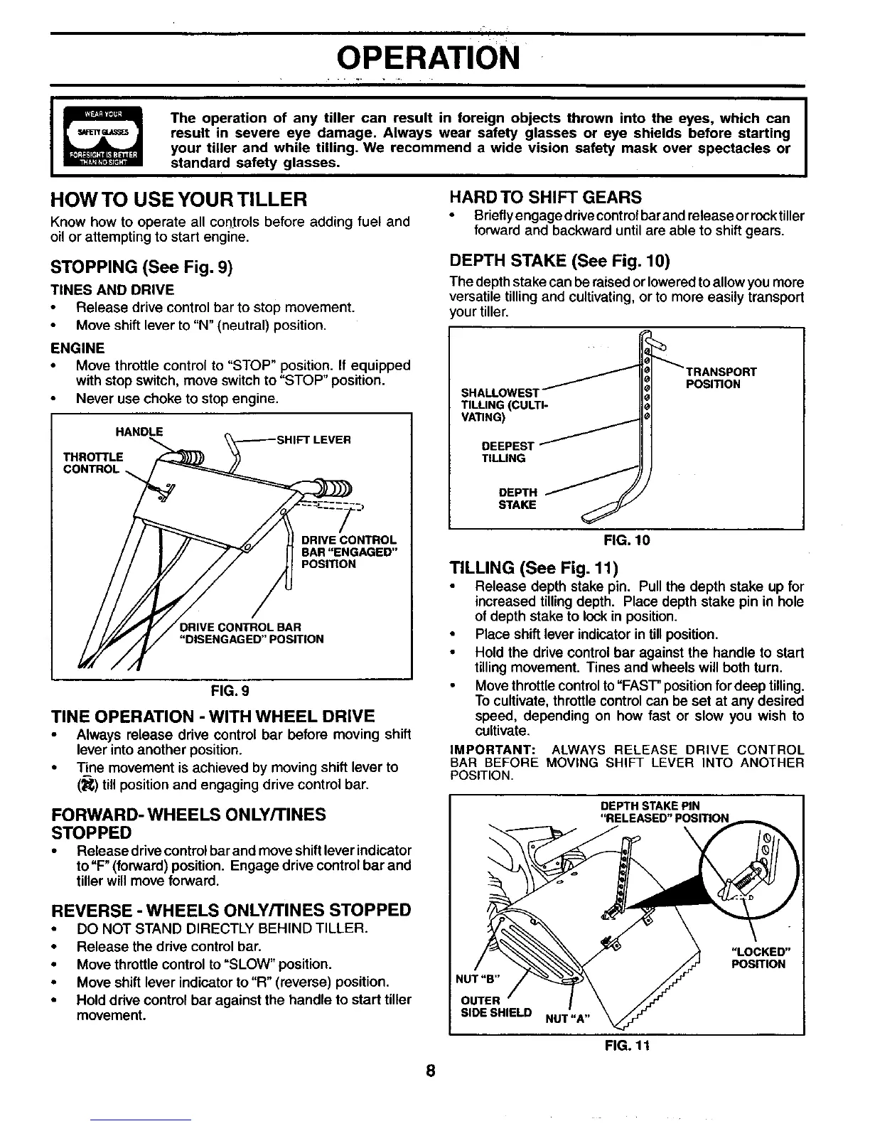 your tiller and while tilling. We recommend a wide vision safety mask over spectacles or