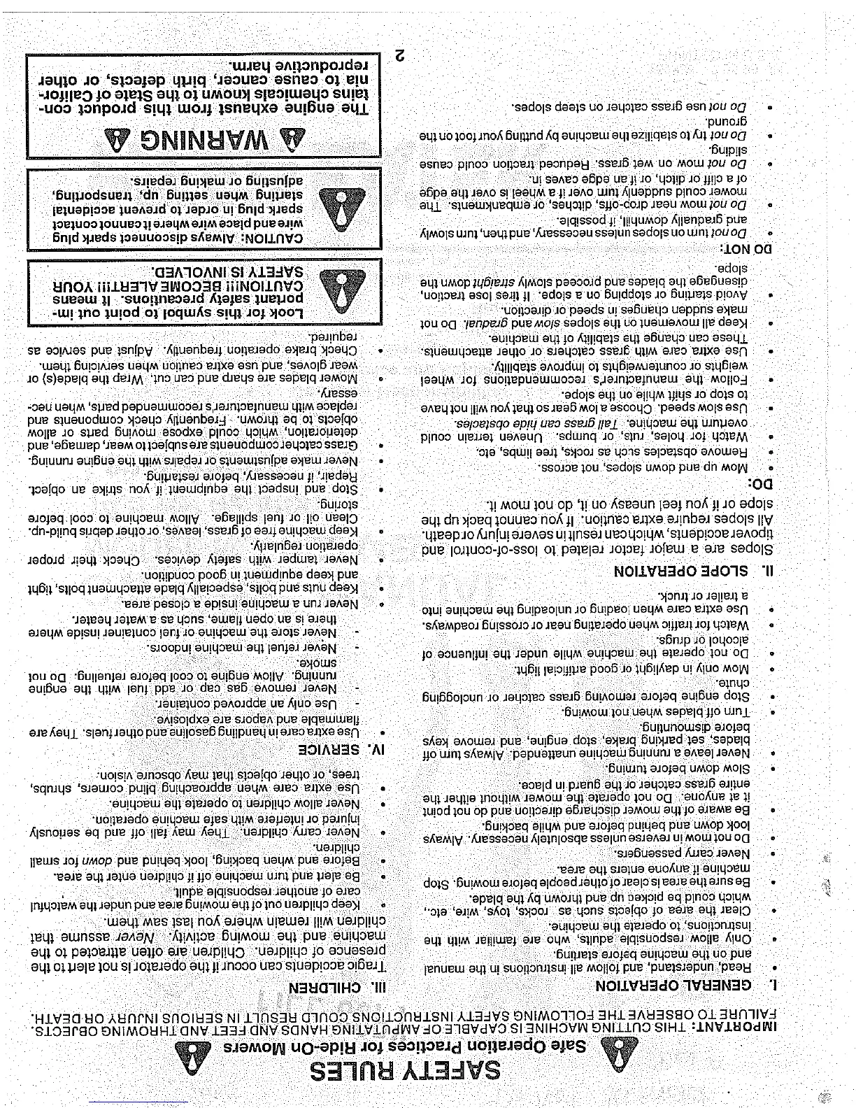 Weed Eater VIP 152336 - Safety Rules; General Operation; Slope Operation; Children