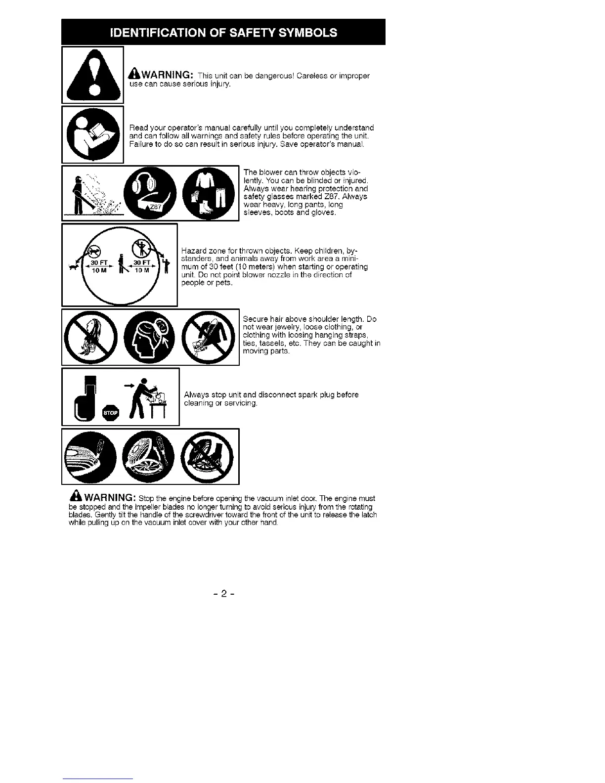be stopped and the impeller blades no longer turning to avoid serious injury from the rotating