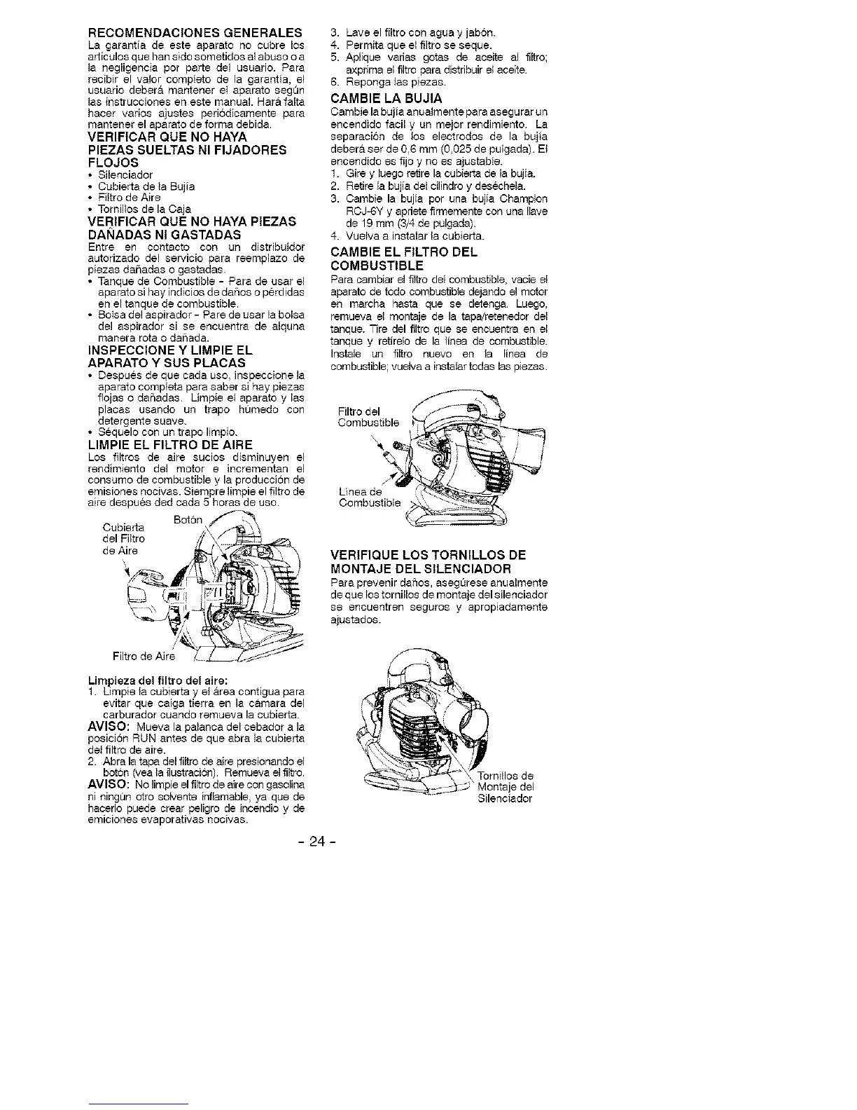 emisiones nocivas. Siempre limpie el filtro de