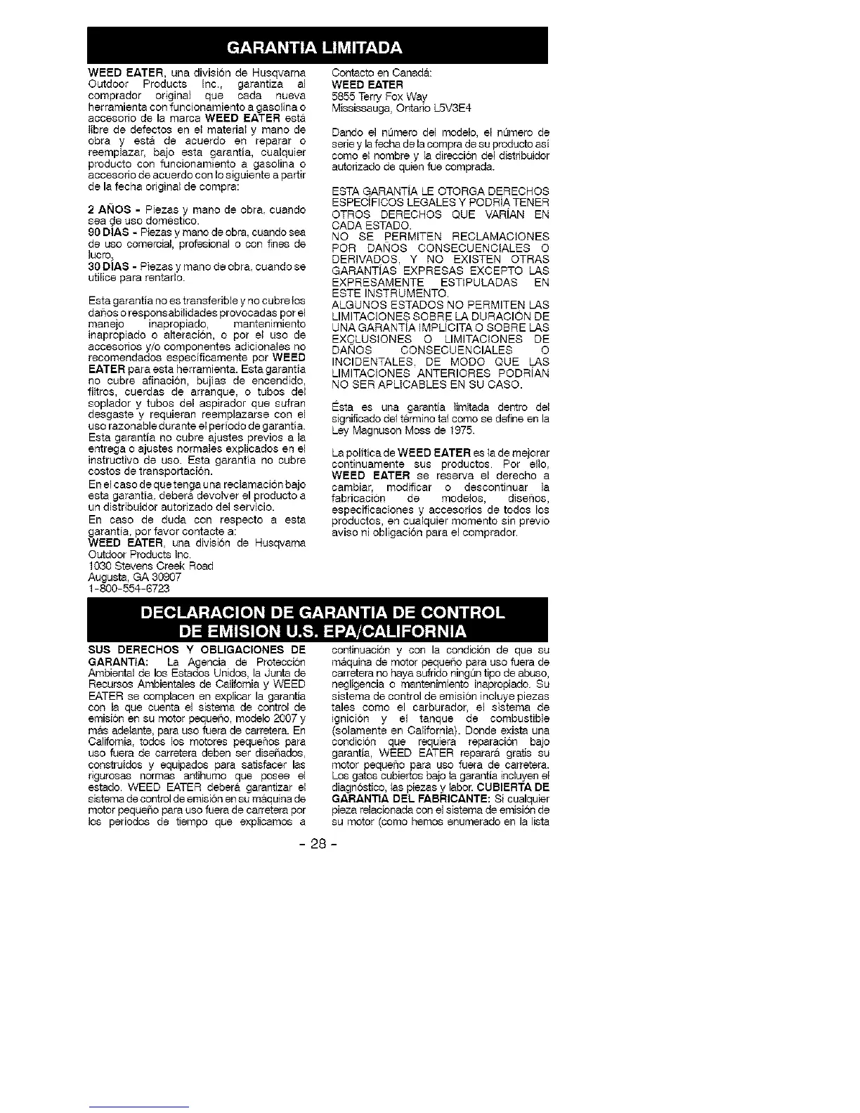 estado. WEED EATER debera garentizar el