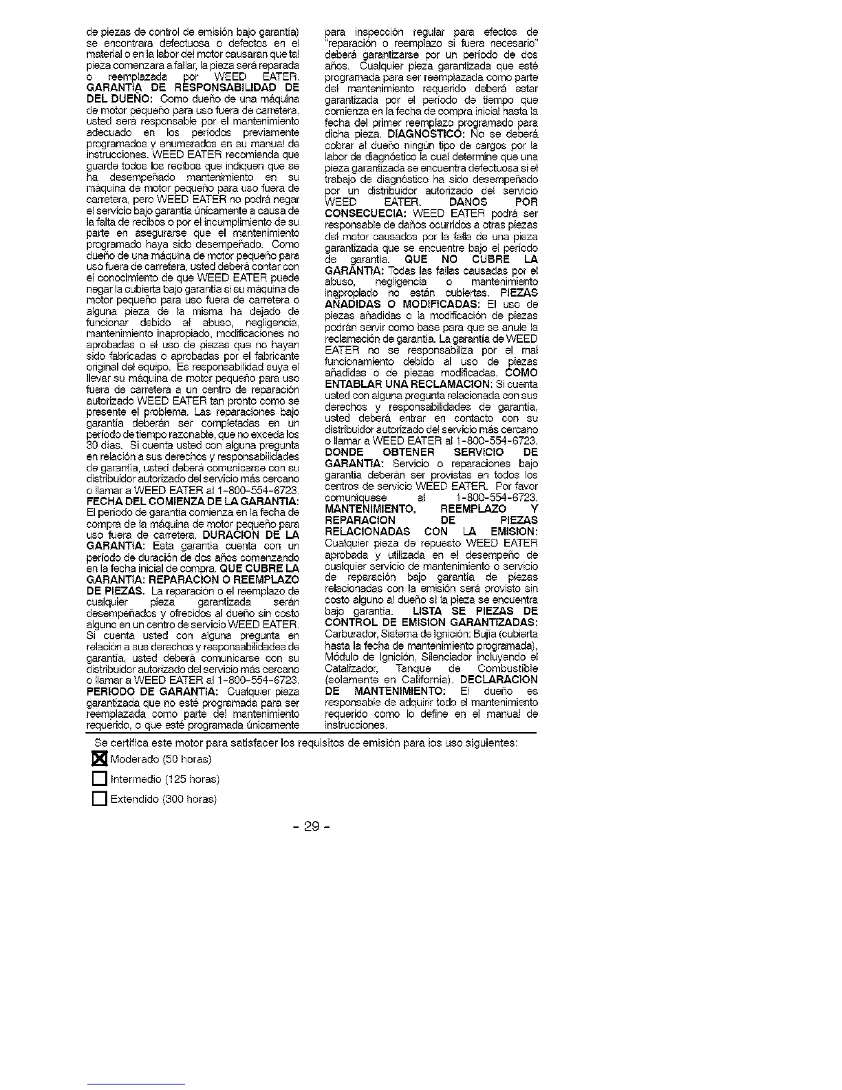 Se certifica este motor para satisfacer los requisitos de emisk_n pare los uso sJguientes: