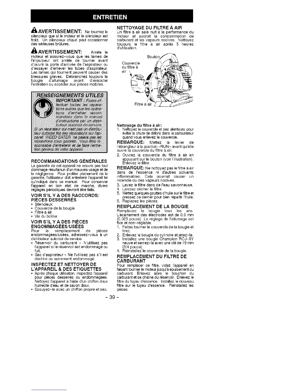 • Sac d'aspirateur - Ne I'utilisez pas s'il est